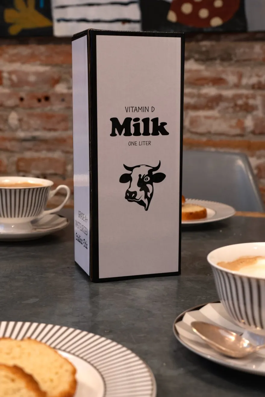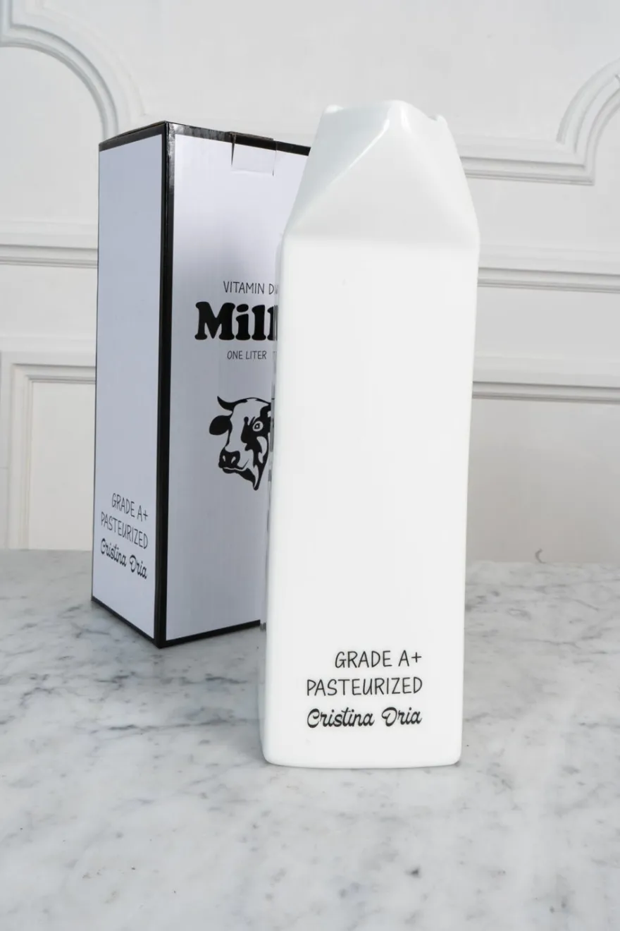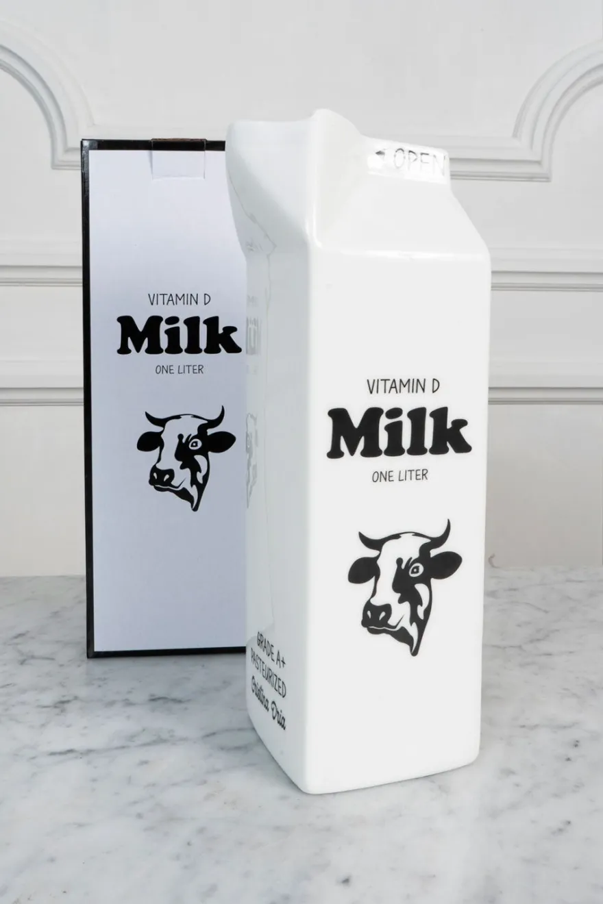Lechera con forma de brick de leche en tamaño grande, original y diseñada exclusivamente por Cristina Oria.