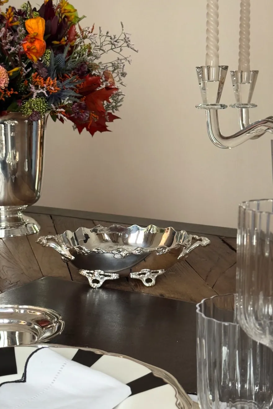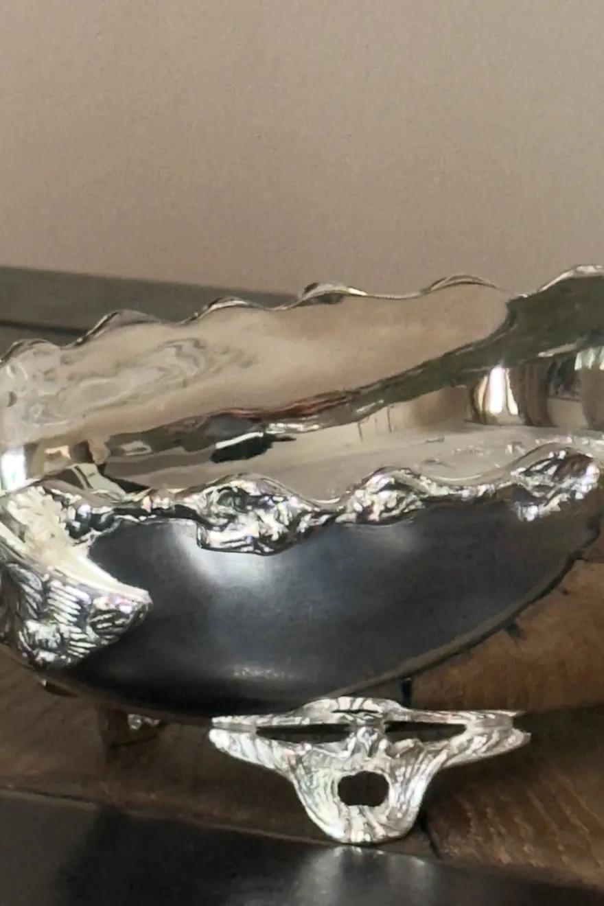 Este recipiente con asas bañado en plata de ley es una pieza que combina elegancia y sofisticación en su diseño, ideal para complementar tus mesas o como pieza decorativa. Un accesorio elegante y atemporal para ocasiones especiales y un regalo para toda la vida.