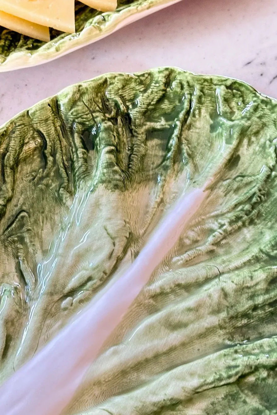 Bandeja de gres con diseño de lechuga, ideal para dar un toque colorido, original y diferente a tus mesas durante cualquier época del año. Esta bandeja no solo es funcional, sino también una pieza decorativa que aporta vida y frescura a la mesa.