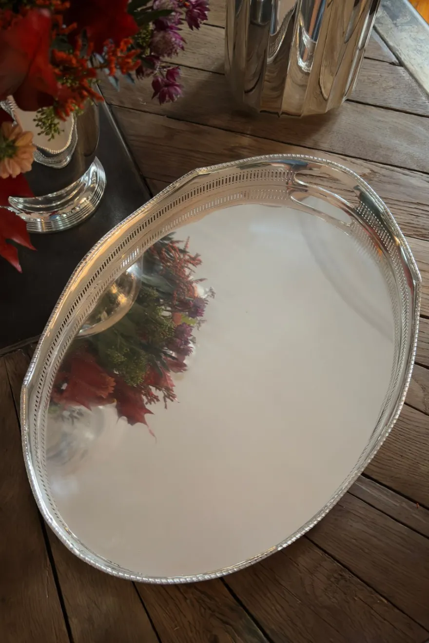 Esta bandeja bañada en plata de ley es una pieza que combina elegancia y sofisticación en su diseño, ideal para servir alimentos o como pieza decorativa. Un accesorio elegante y atemporal para ocasiones especiales y un regalo para toda la vida.