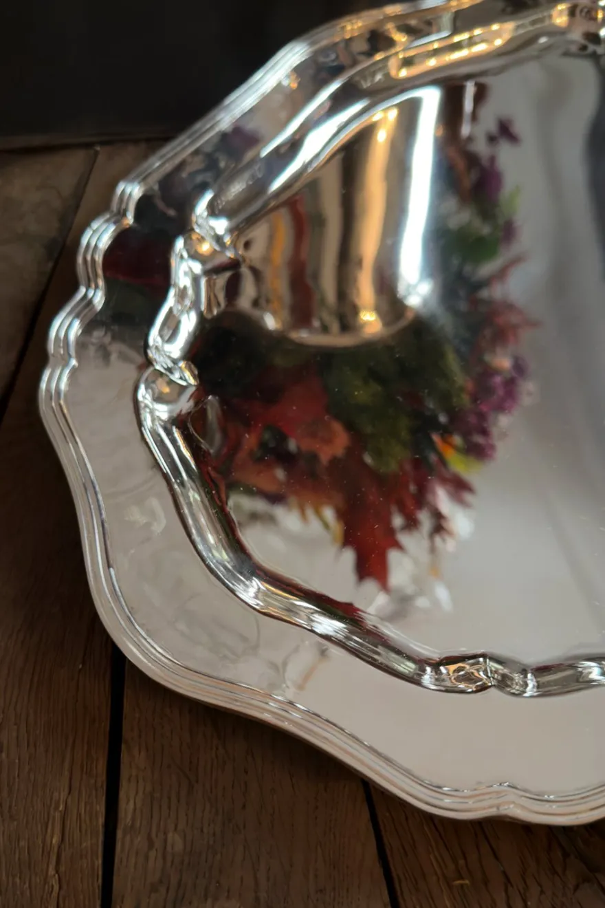 Esta bandeja bañada en plata de ley es una pieza que combina elegancia y sofisticación en su diseño, ideal para servir alimentos o como pieza decorativa. Un accesorio elegante y atemporal para ocasiones especiales y un regalo para toda la vida.