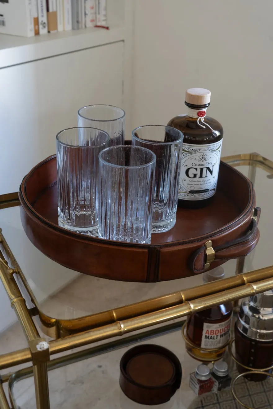 Esta bandeja redonda de cuero es un accesorio elegante y funcional, ideal para decorar cualquier rincón de tu casa u oficina, manteniendo los espacios ordenados con estilo.