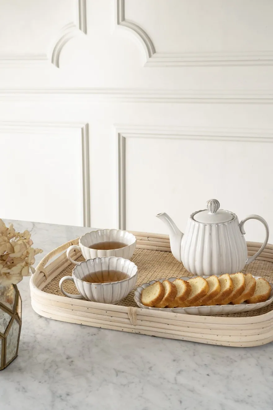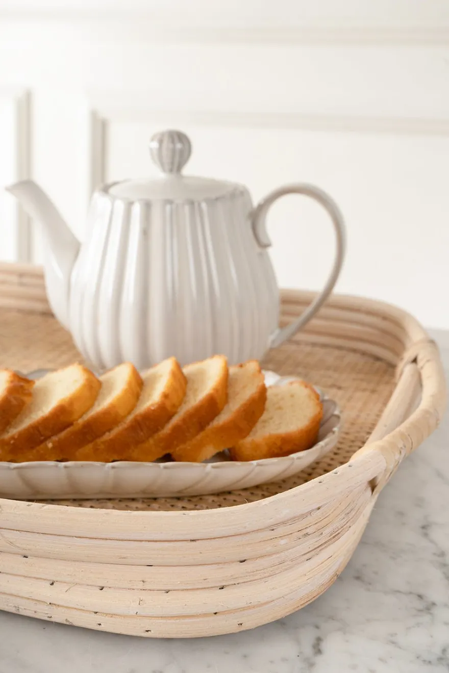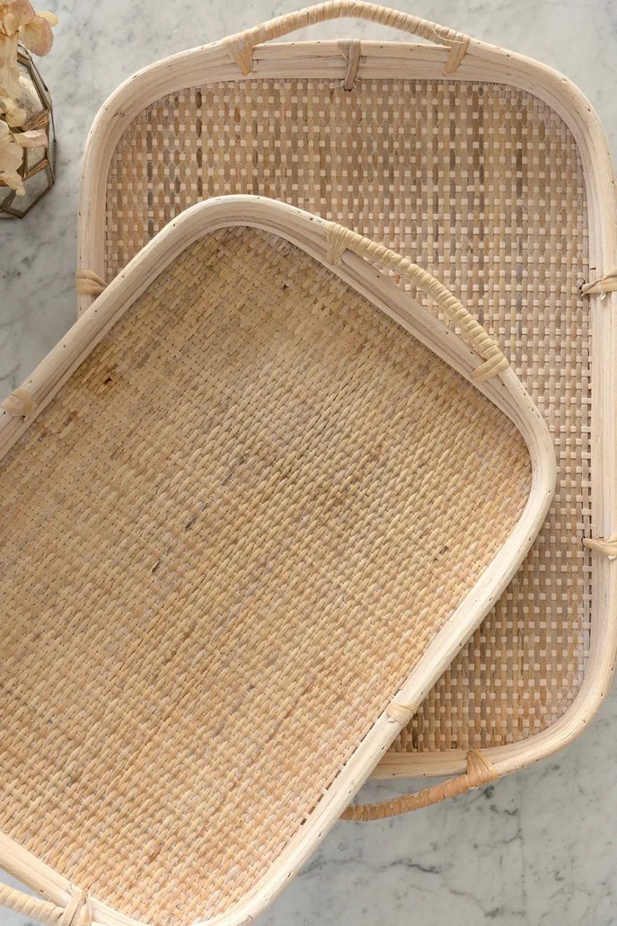 Bandejas rectangulares de ratán natural con asas, versátiles y perfectas para servir o incluso pueden usarse como centros de mesa.
