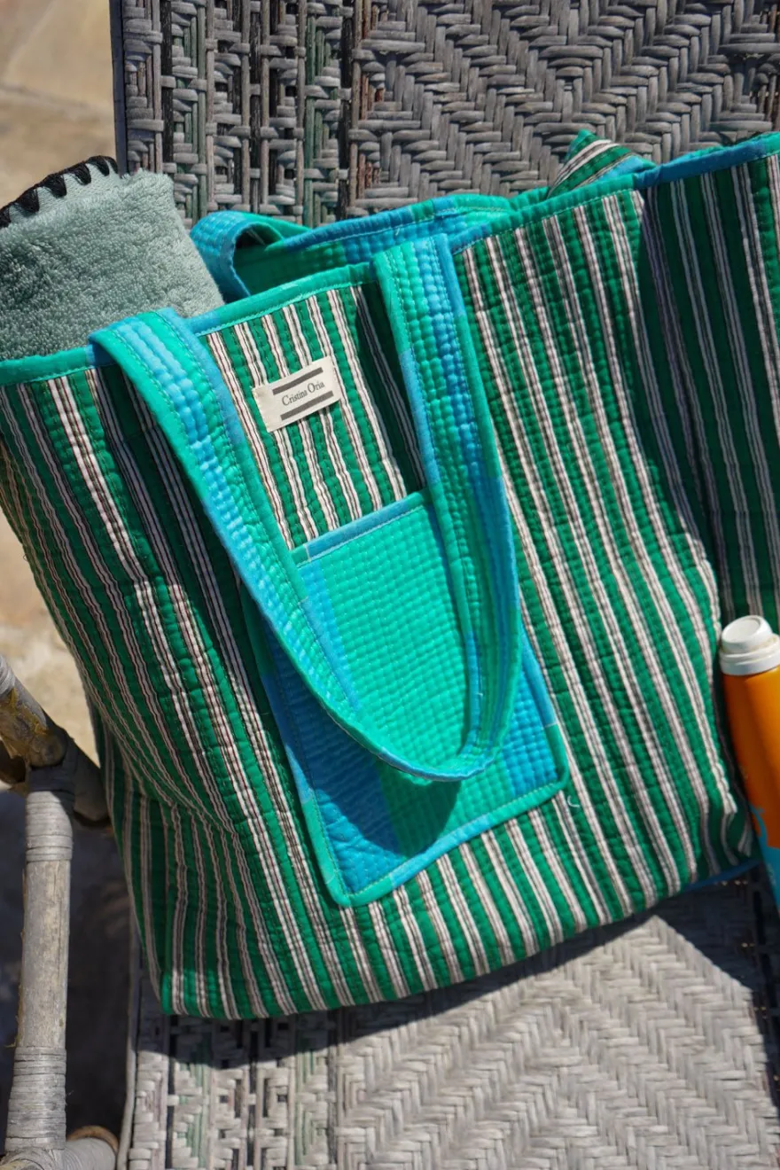 Cristina Oria Bolsos, Bolsas Y Neceseres|Otros Textil^Bolsa Rayas Azules Y Verdes
