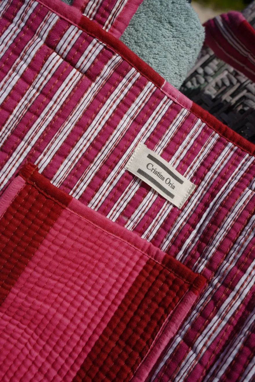 Bolsa reversible con capacidad suficiente para el día a día de la oficina, universidad, viajes, playa… Está confeccionada en 100% algodón y pintada a mano en la India.
