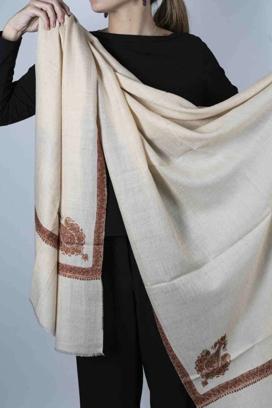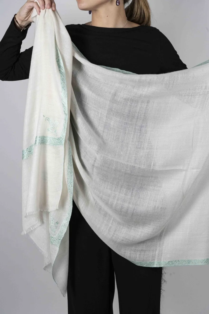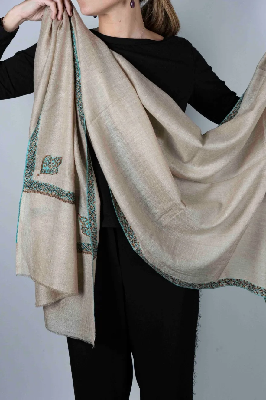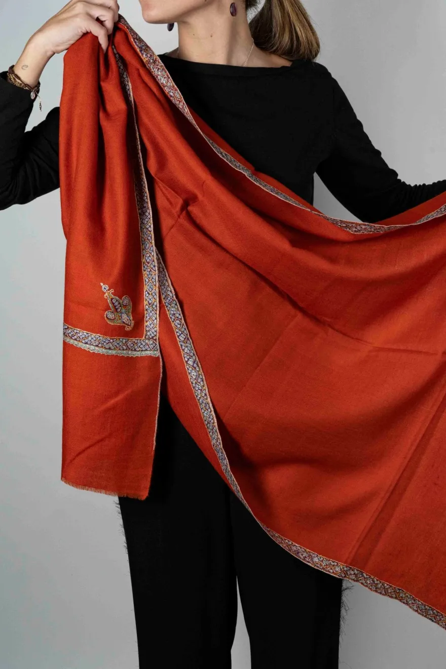 Esta bufanda de 100% pashmina además de ser una auténtica joya bordada a mano, es una prenda cálida y ligera, ideal para cualquier ocasión, que ofrece una textura increíblemente suave al tacto. Perfecta para abrigarte durante los días fríos.