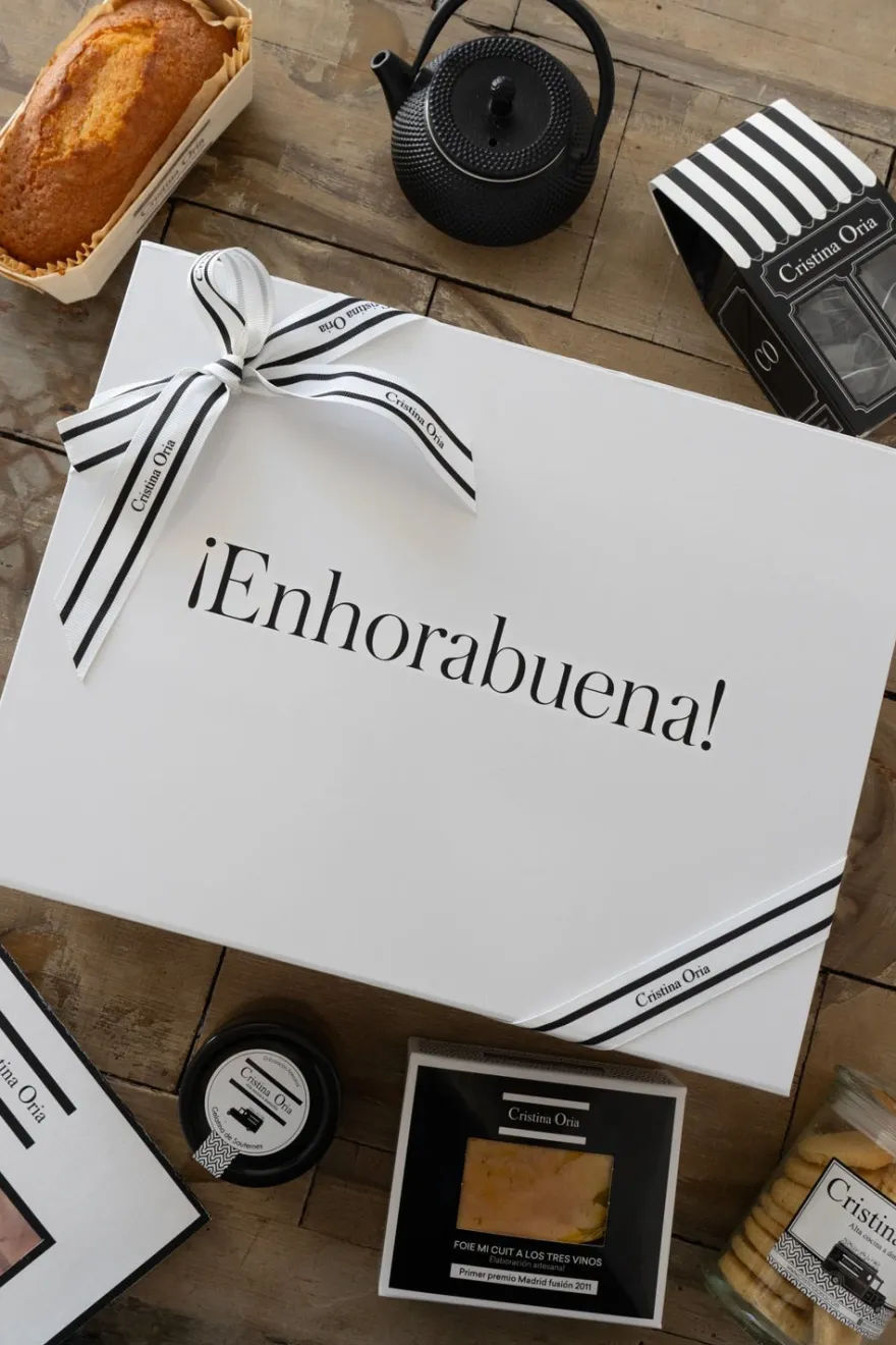 – Caja grande CO «Enhorabuena» con papel de seda y lazo