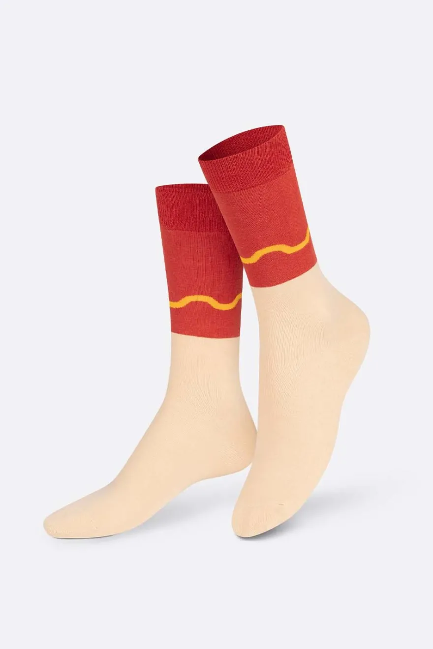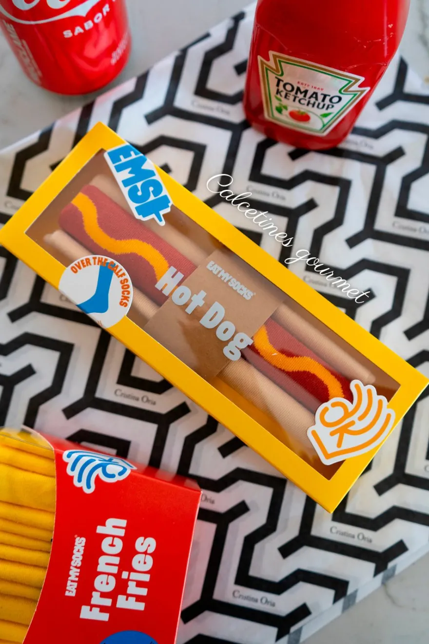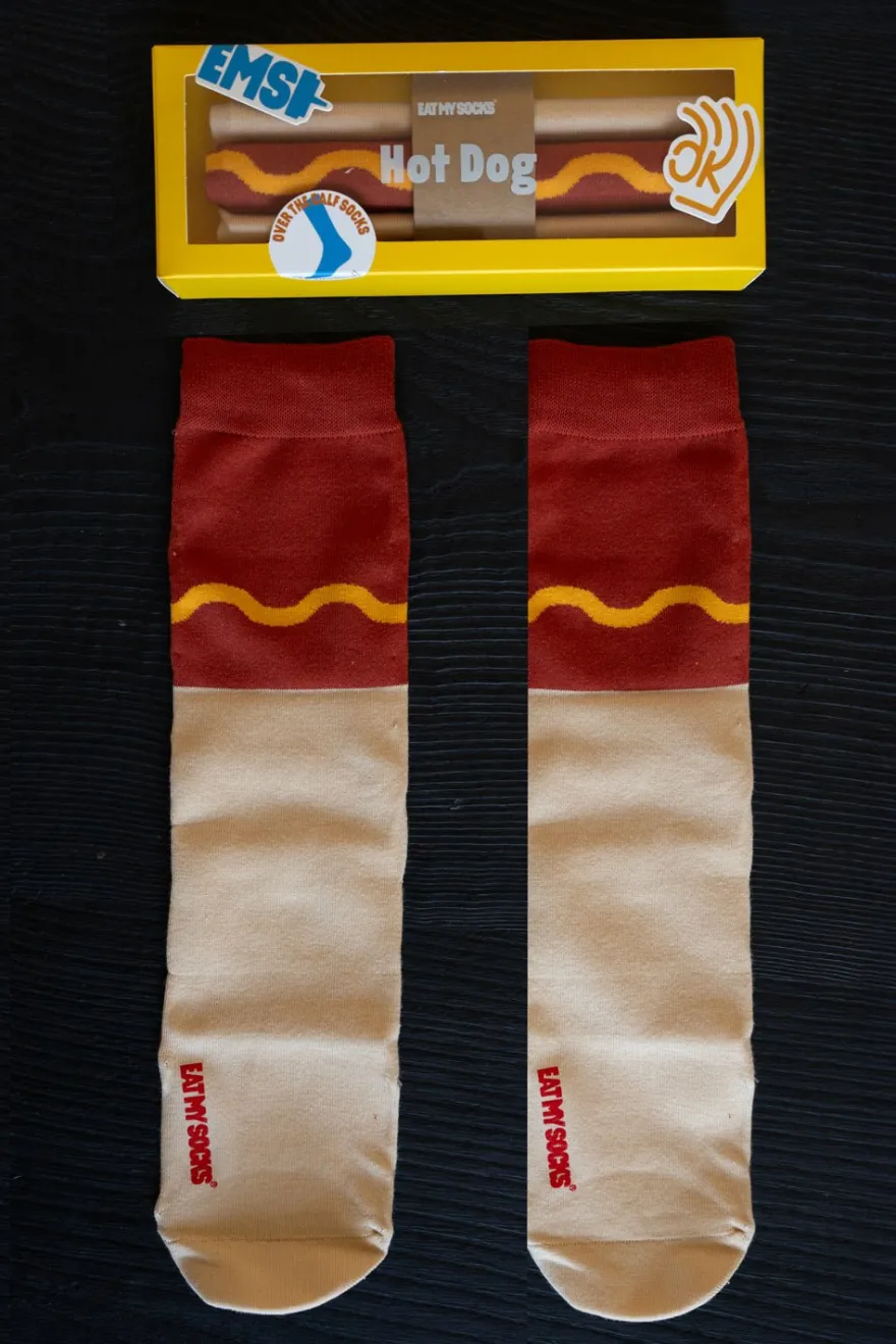 Los calcetines más originales con un packaging súper especial, que simulan un perrito caliente.