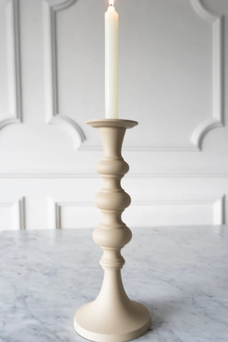 Candelabro clásico de aluminio en color crema, ideal para decorar o ambientar cualquier rincón de tu casa, o incluso como centro de mesa para complementarla.