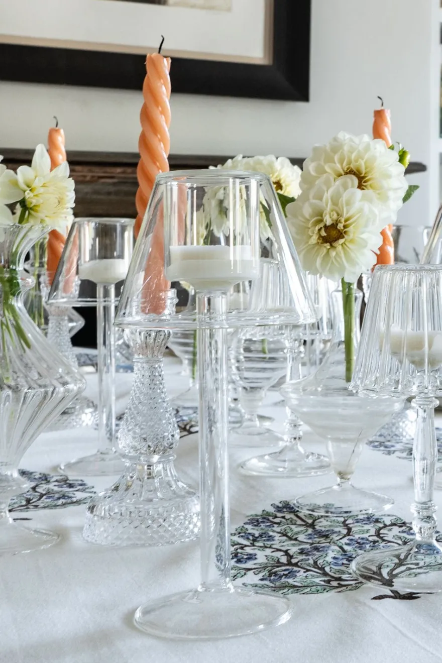 Candelabro o portavelas de cristal transparente con diseño de lámpara, ideal y versátil para ambientar y decorar cualquier rincón de casa durante todo el año.