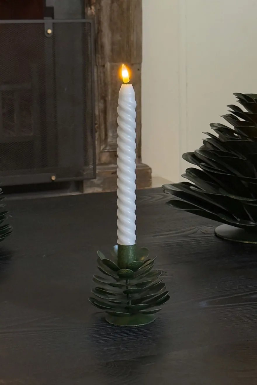 Este candelabro de hierro presenta un elegante diseño en forma de árbol, ideal para añadir un toque natural y festivo a cualquier espacio. Su estructura sólida y su acabado en tonos verdes lo convierten en una pieza decorativa perfecta para mesas, repisas o centros de mesa durante la temporada navideña. Funcional y decorativo, aporta calidez y estilo a tu casa.