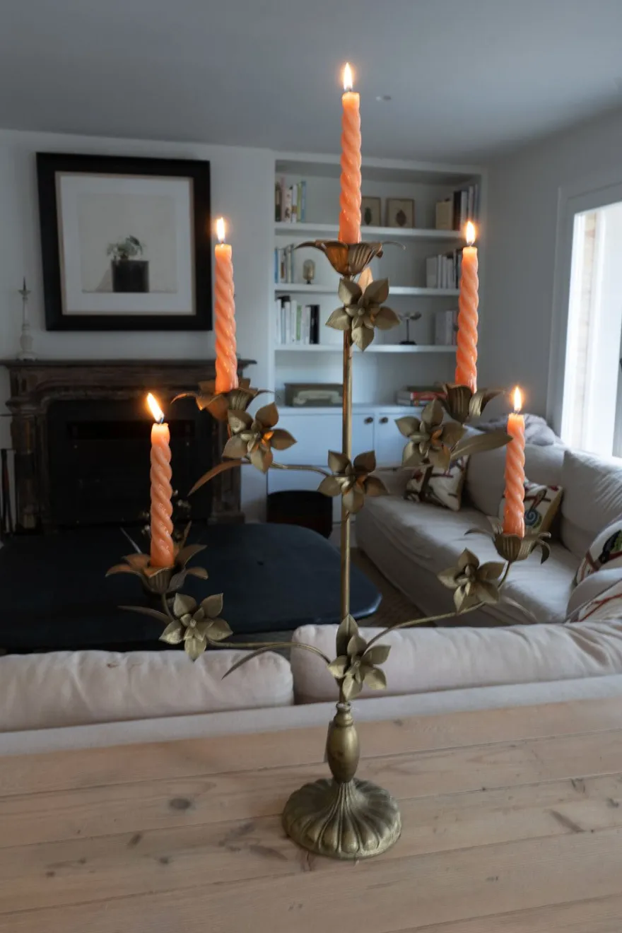 Cristina Oria Candelabros Y Portavelas^Candelabro Dorado Alto Con Diseño De Flores Para 5 Velas