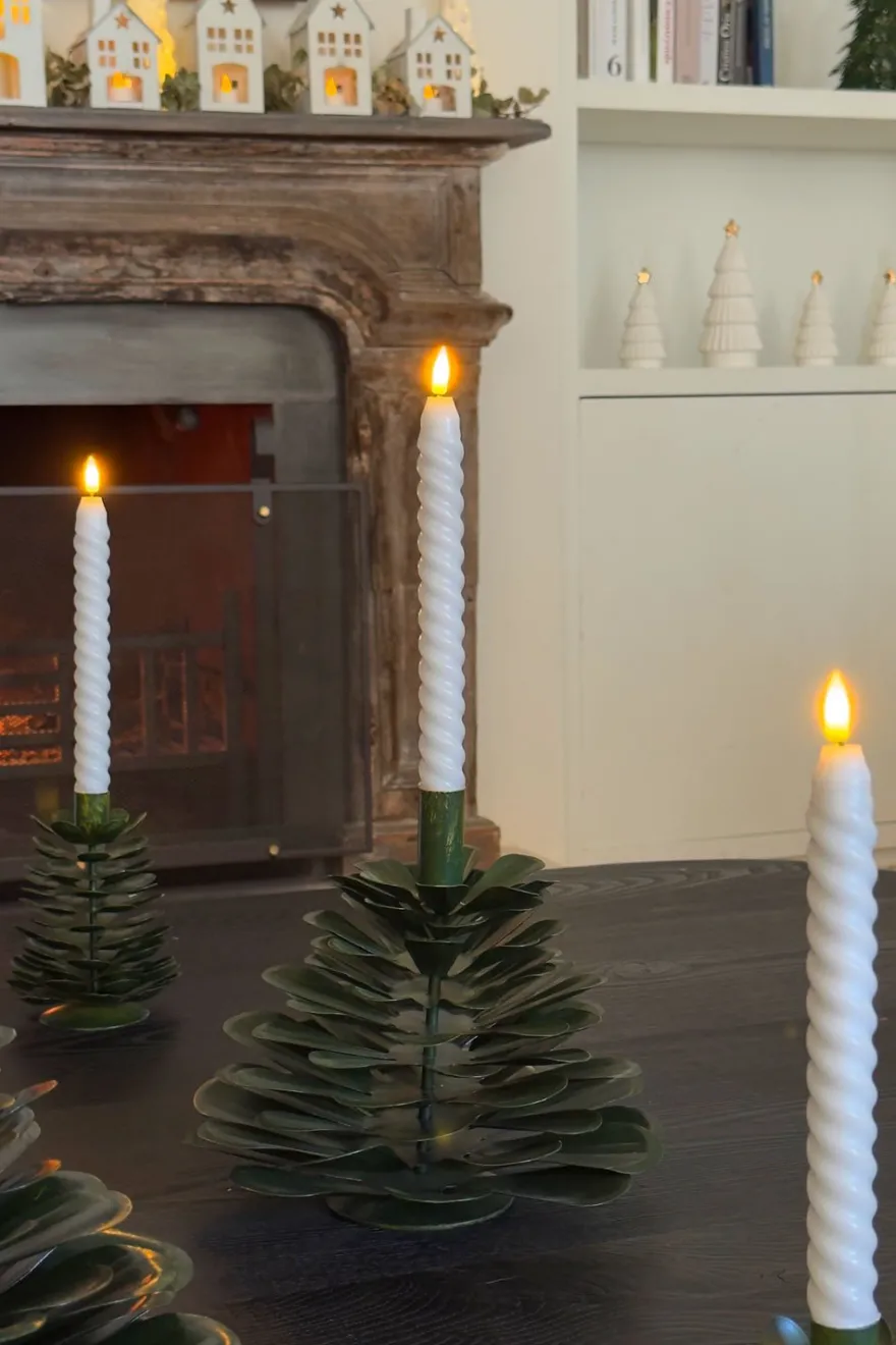 Este candelabro de hierro presenta un elegante diseño en forma de árbol, ideal para añadir un toque natural y festivo a cualquier espacio. Su estructura sólida y su acabado en tonos verdes lo convierten en una pieza decorativa perfecta para mesas, repisas o centros de mesa durante la temporada navideña. Funcional y decorativo, aporta calidez y estilo a tu casa.