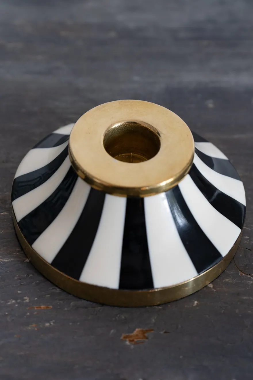Portavelas de resina con diseño de rayas blancas y negras, elaborado con patrones únicos y fabricado de manera artesanal, convirtiéndolo en una pieza única que combina perfectamente con cualquier decoración. Estas piezas están diseñadas y pulidas de tal forma que su acabado permanece como el primer día durante mucho tiempo.