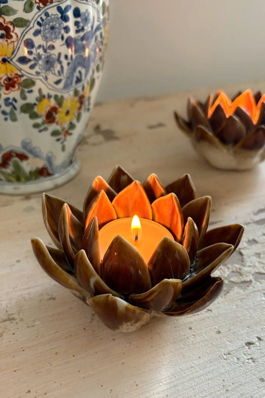 Cristina Oria Candelabros Y Portavelas^Portavelas Flor De Loto Marrón