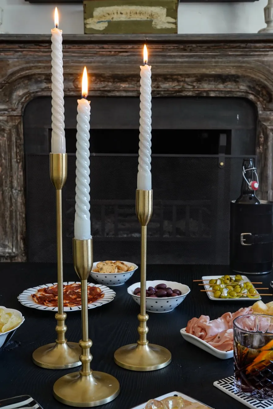Set de 3 candelabros de metal dorados de 23, 29 y 35 centímetros de altura, ideales para ocasiones especiales o para añadir un toque de sofisticación a tu decoración diaria.