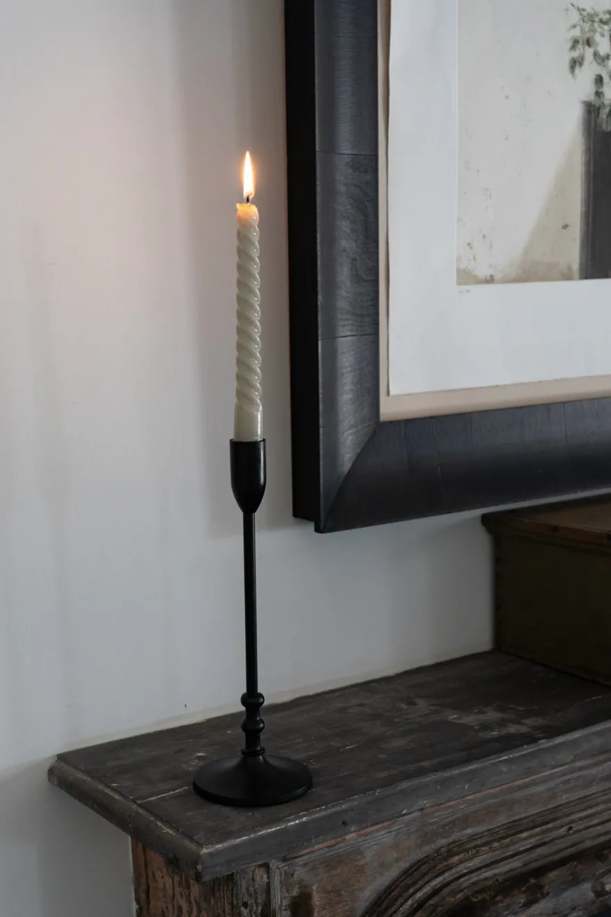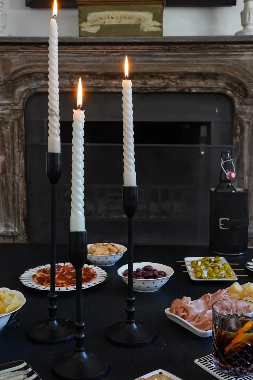 Set de 3 candelabros de metal negros de 23, 29 y 35 centímetros de altura, ideales para ocasiones especiales o para añadir un toque de sofisticación a tu decoración diaria.
