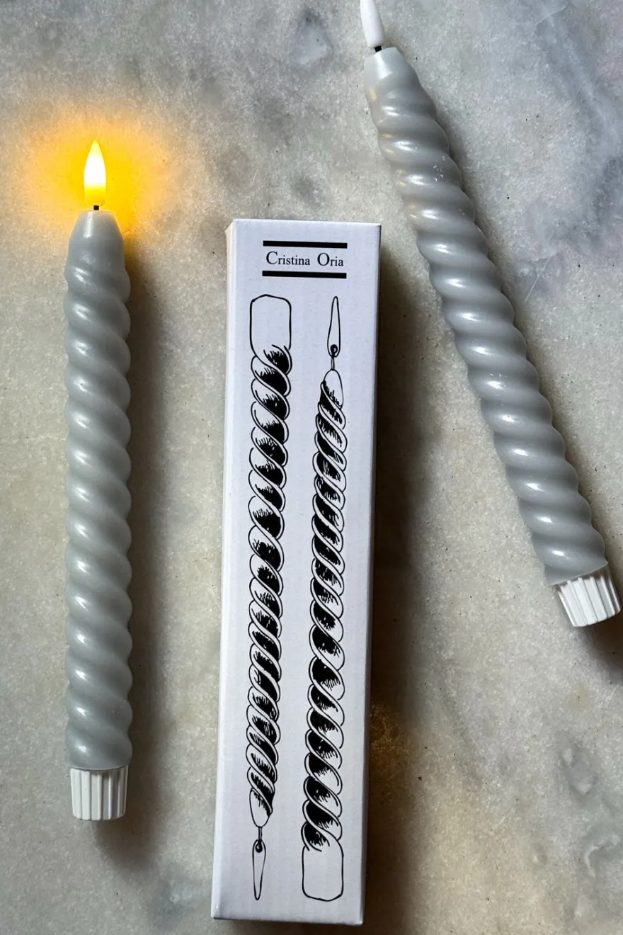 - Set de 2 velas LED con diseño en espiral en color gris claro