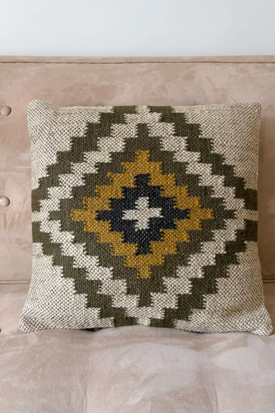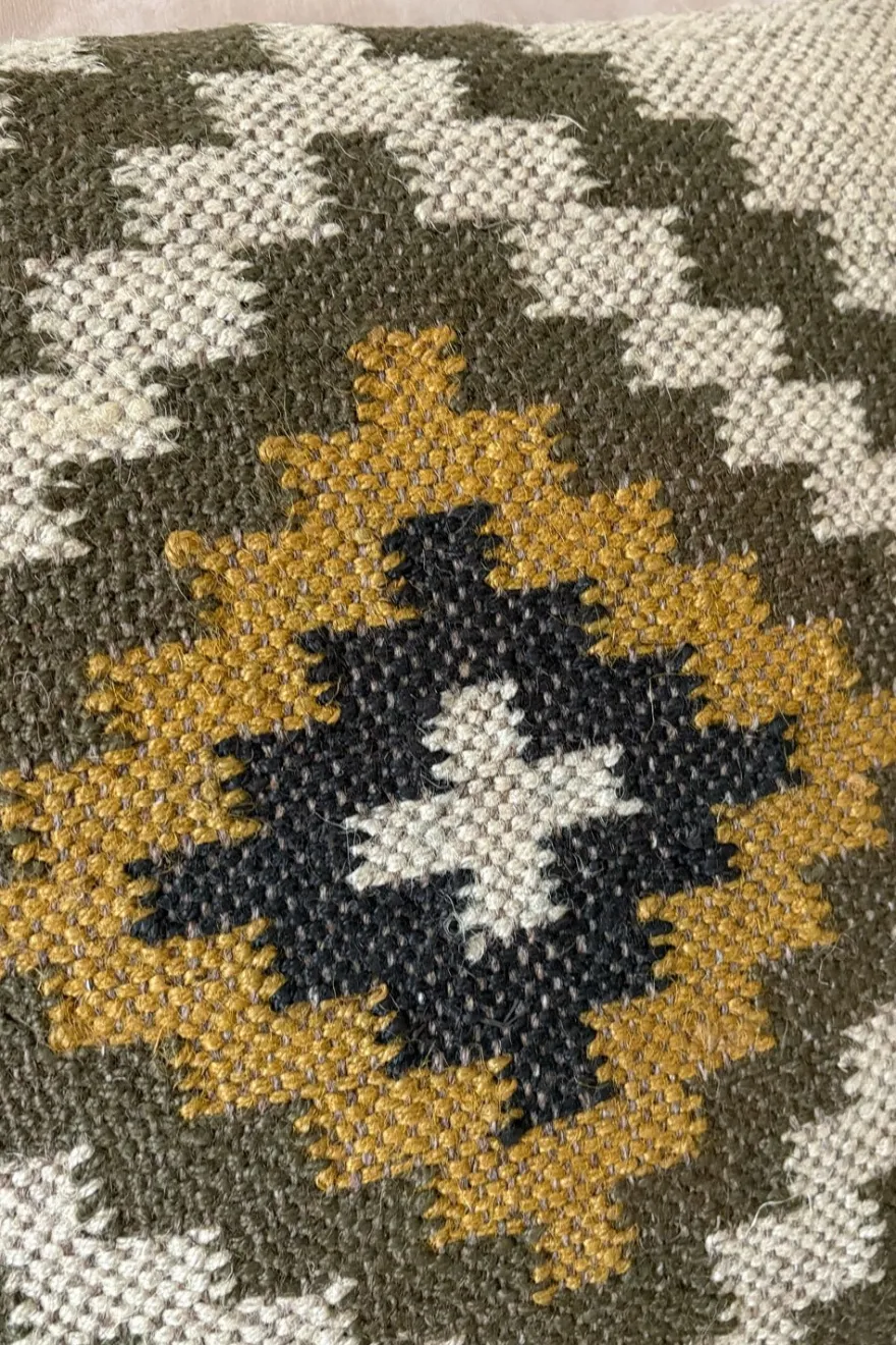 Colección de cojines elaborados en yute y lana, materiales naturales que aportan textura, calidez y un carácter artesanal a cualquier espacio. Sus diseños geométricos, inspirados en tejidos tradicionales tipo kilim, combinan tonos tierra y motivos étnicos que encajan fácilmente en ambientes boho, rústicos o contemporáneos.