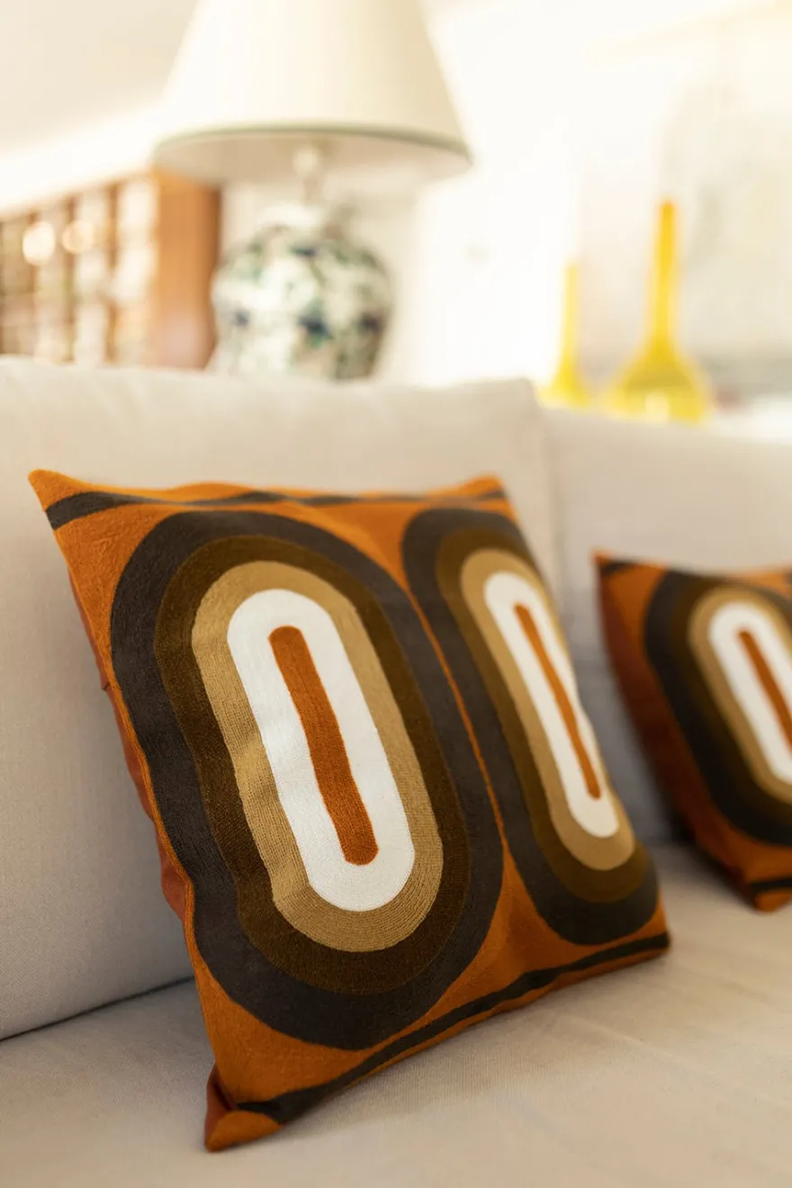 Cojín de algodón bordado a mano, con diseño retro en tonalidades teja, que le dará un aspecto fresco, elegante y lujoso a tu salón o dormitorio.