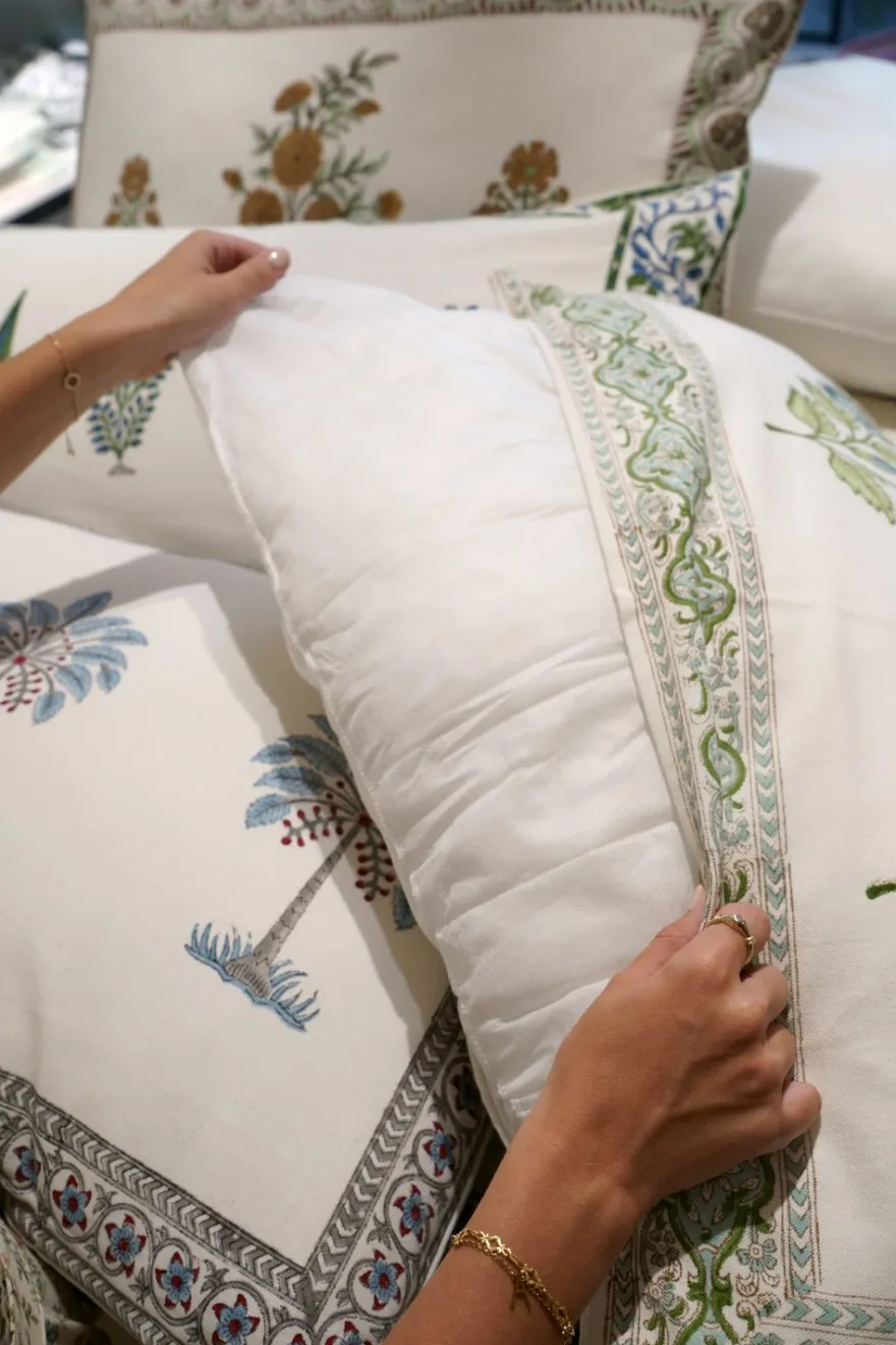 Mide 45×70 cm, al igual que nuestras fundas de la Colección de la India, que las tenemos en siete diseños diferentes.