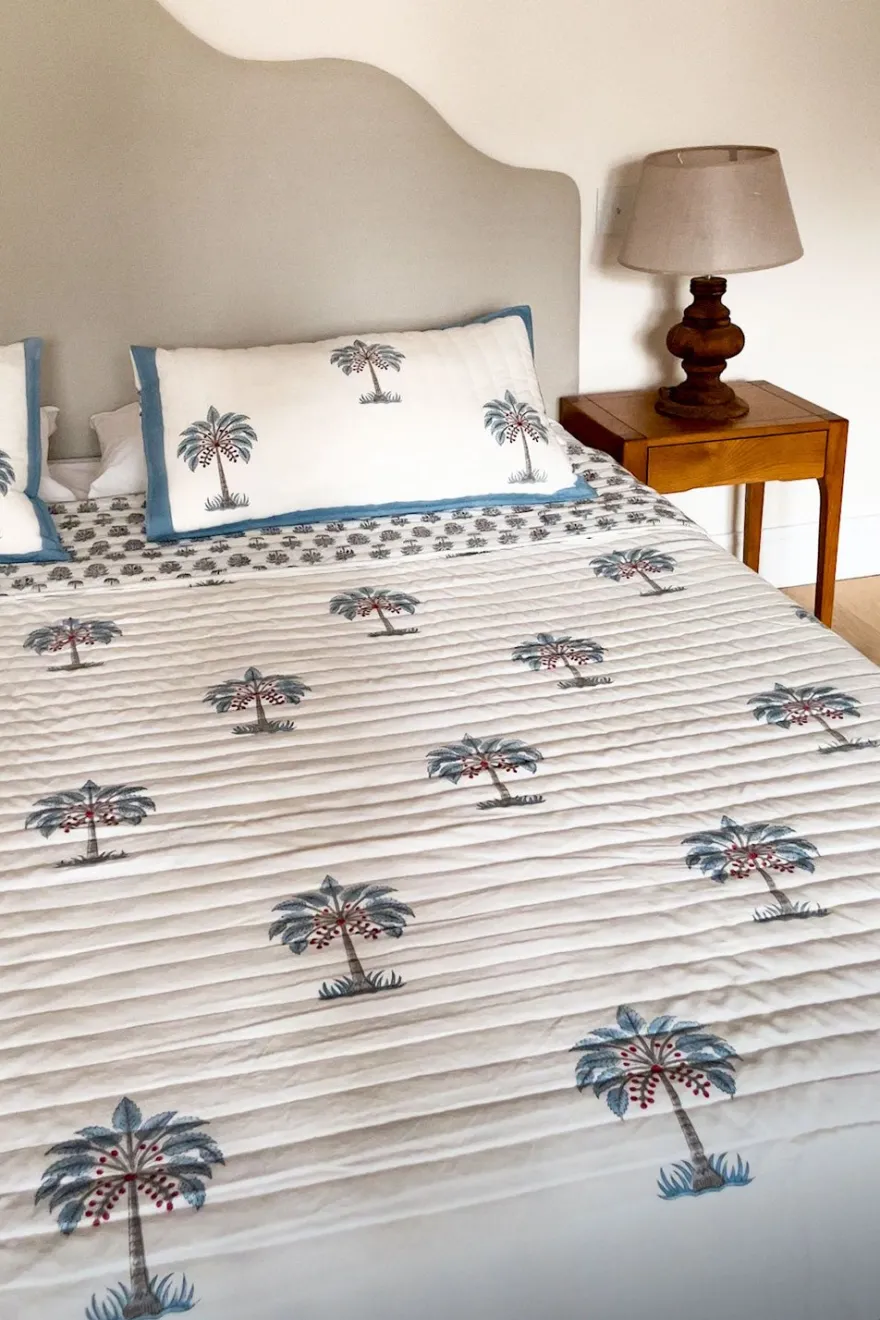 Edredón 100% algodón con diseño Indira, cuyo significado es “Belleza”, pintado a mano en la India.
