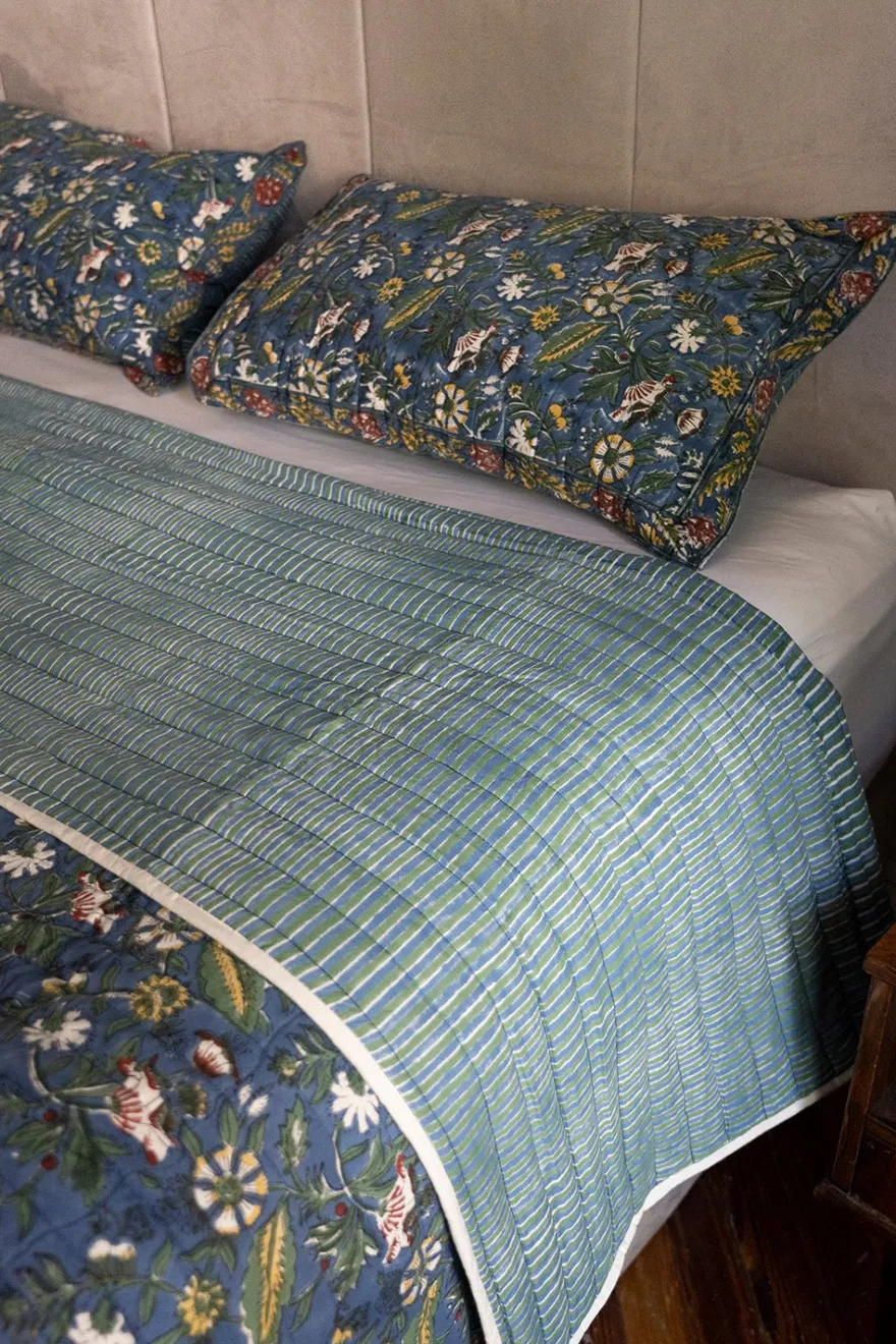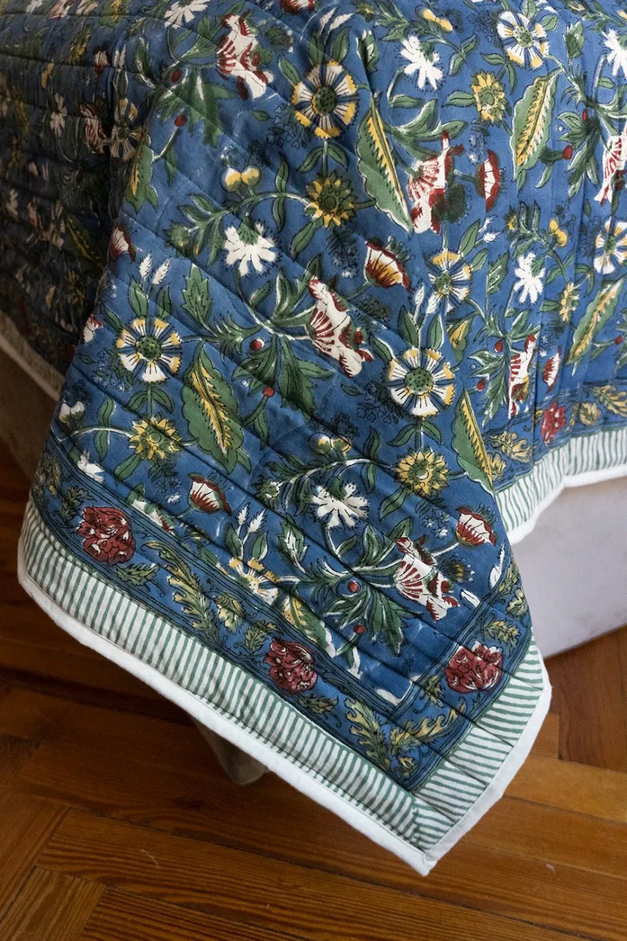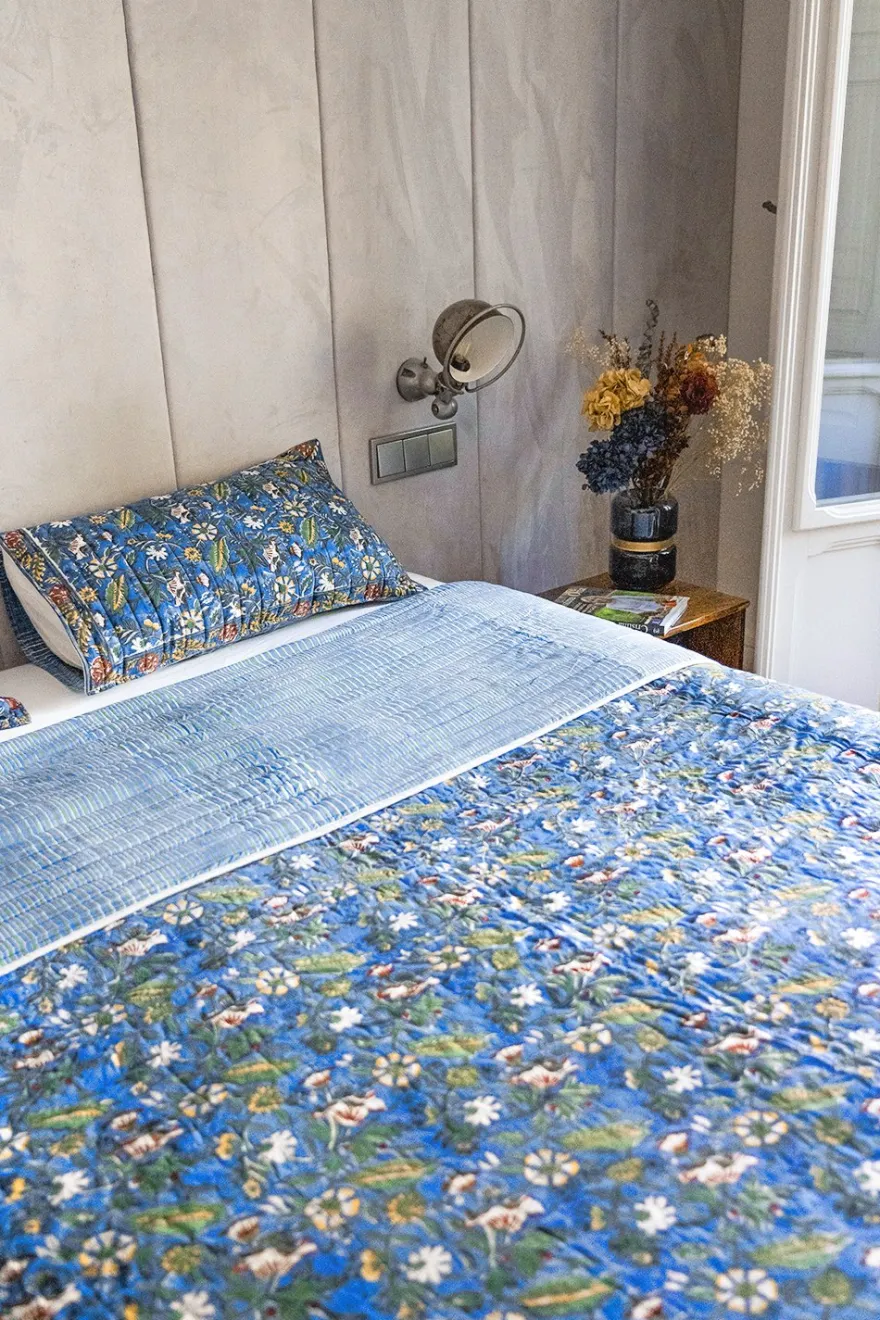 Edredón 100% algodón con diseño Warsha, cuyo significado es “Lluvia”, pintado a mano en la India.