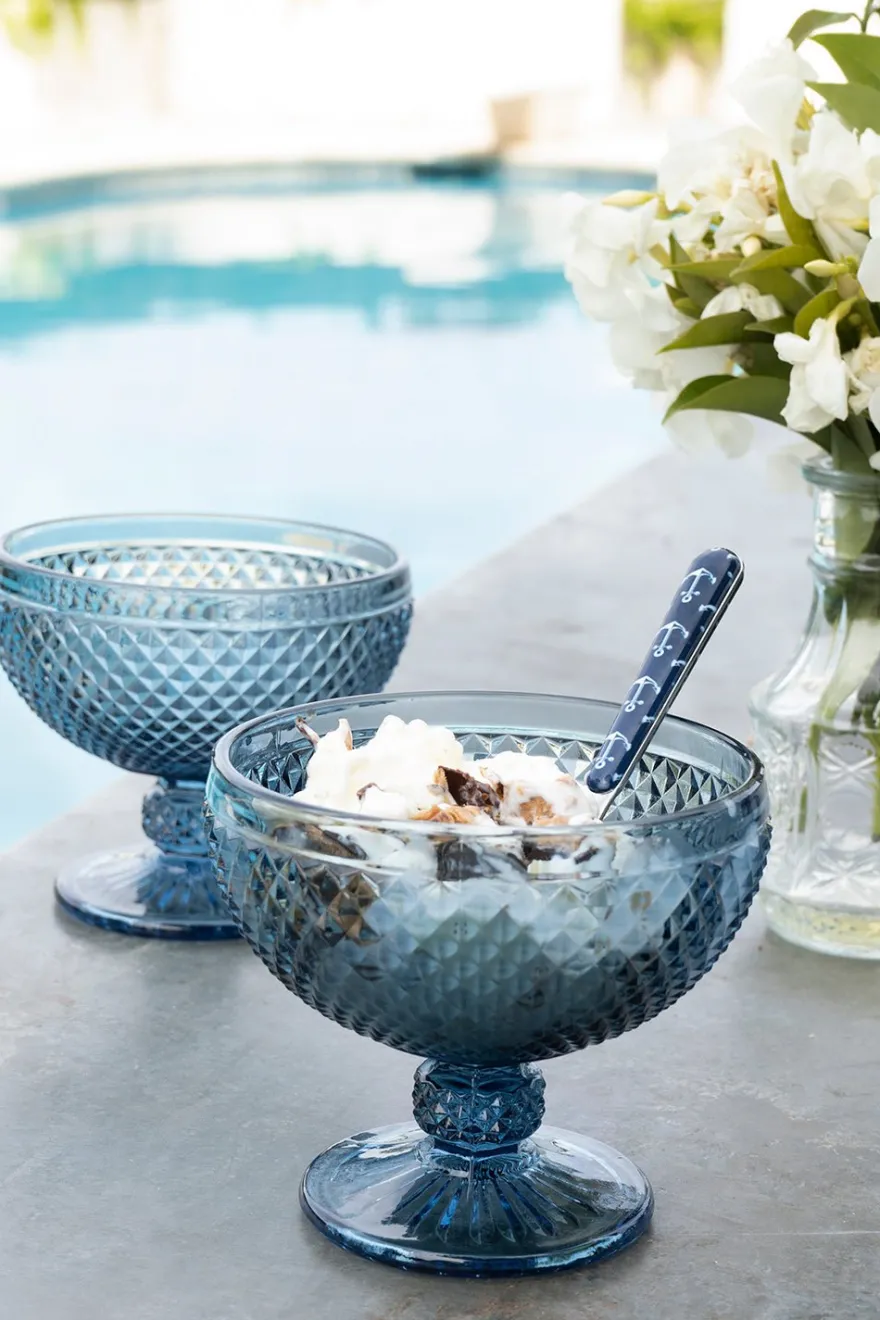Copa para helados o postres de cristal tallada con picos teñida en color azul oscuro, ideal para cualquier ocasión.