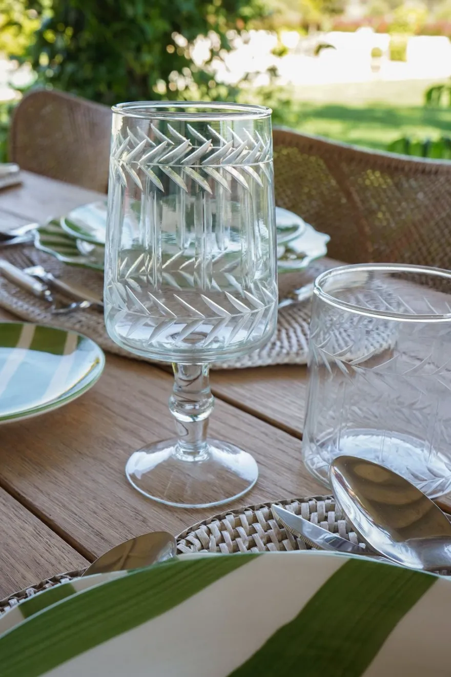 Copa de nuestra cristalería de cristal soplado y tallada a mano que destaca por su elegancia atemporal y su meticuloso trabajo artesanal. Las irregularidades del diseño hacen única cada pieza.