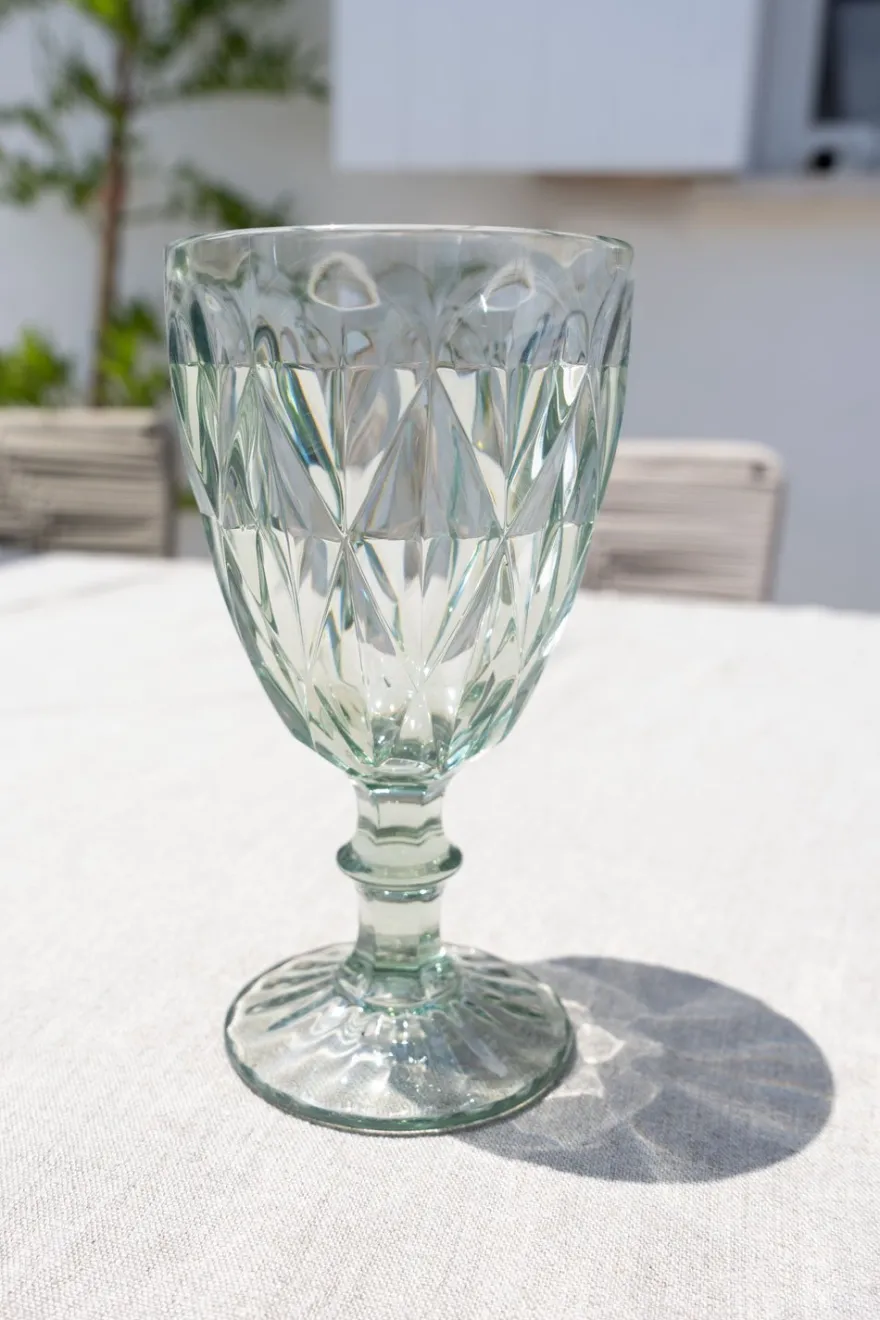 Copa verde acrílica con diseño de rombos, ideal para complementar y dar un toque fresco, original y diferente a tus mesas este verano.