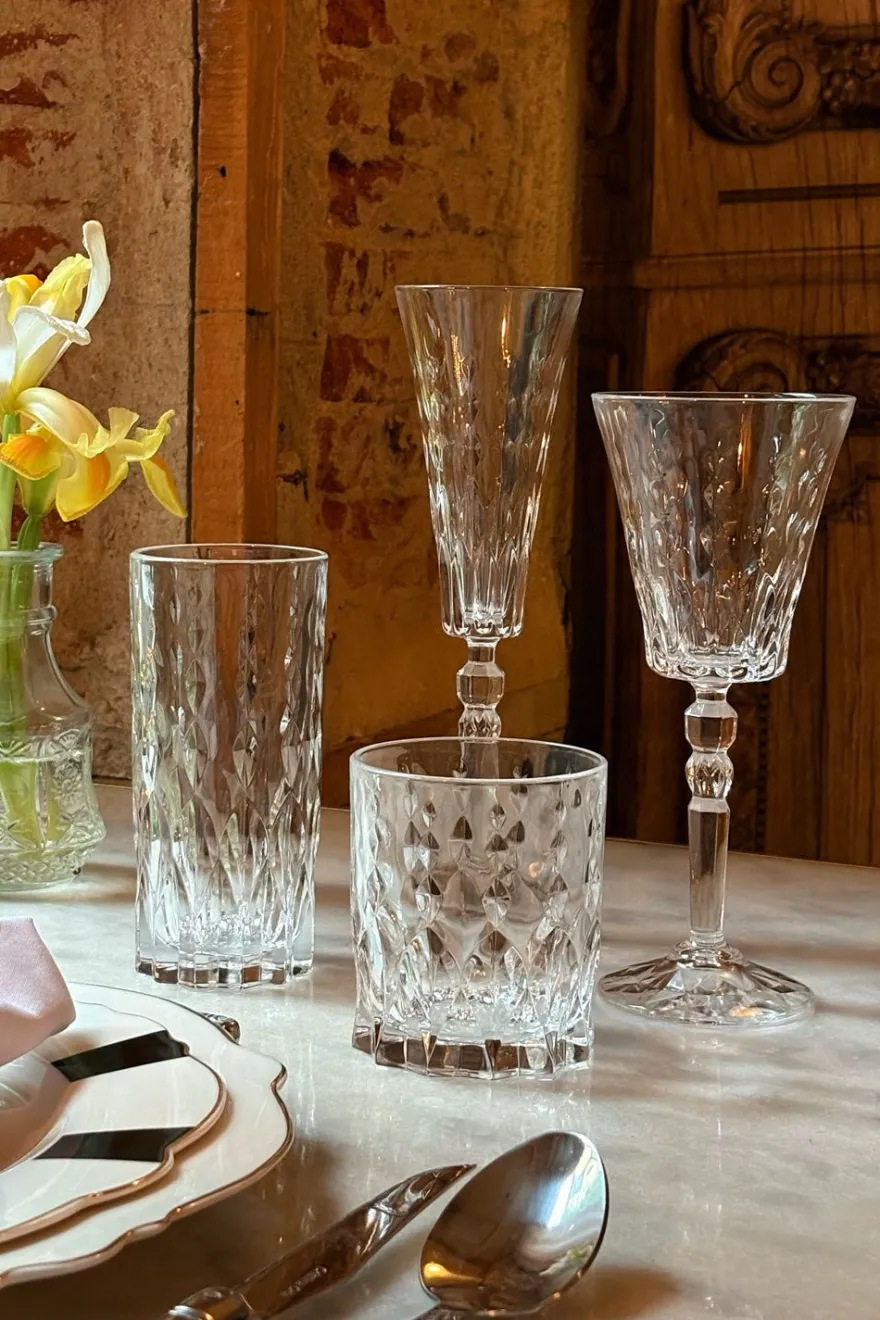 Set de seis copas de champagne de nuestra cristalería con diseño lumiére.