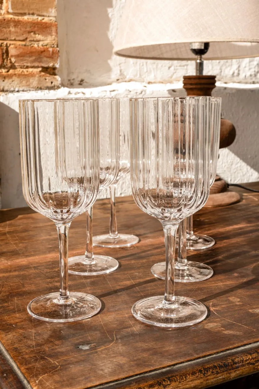 Set de seis copas de vino de nuestra cristalería con diseño de ondas.