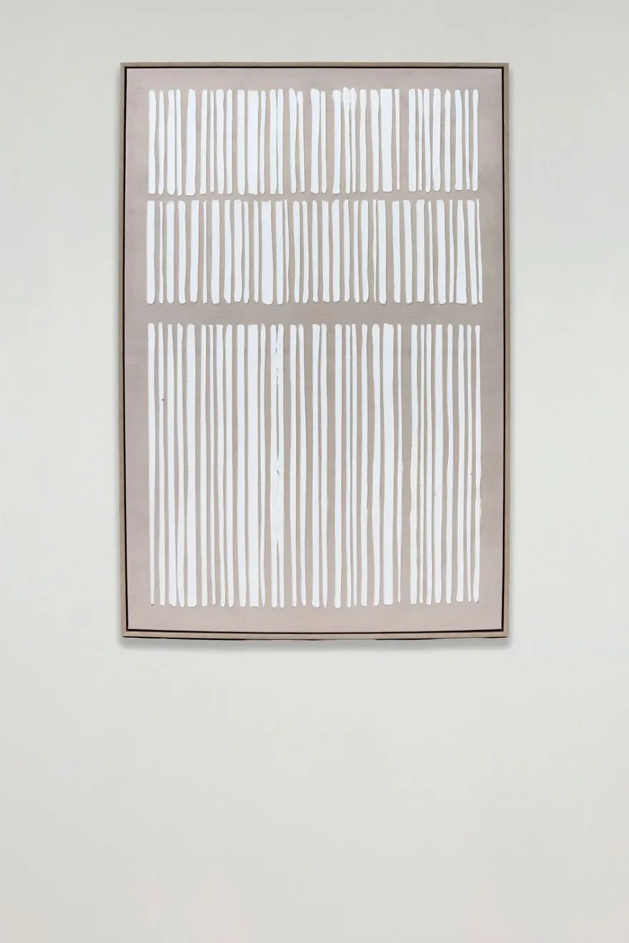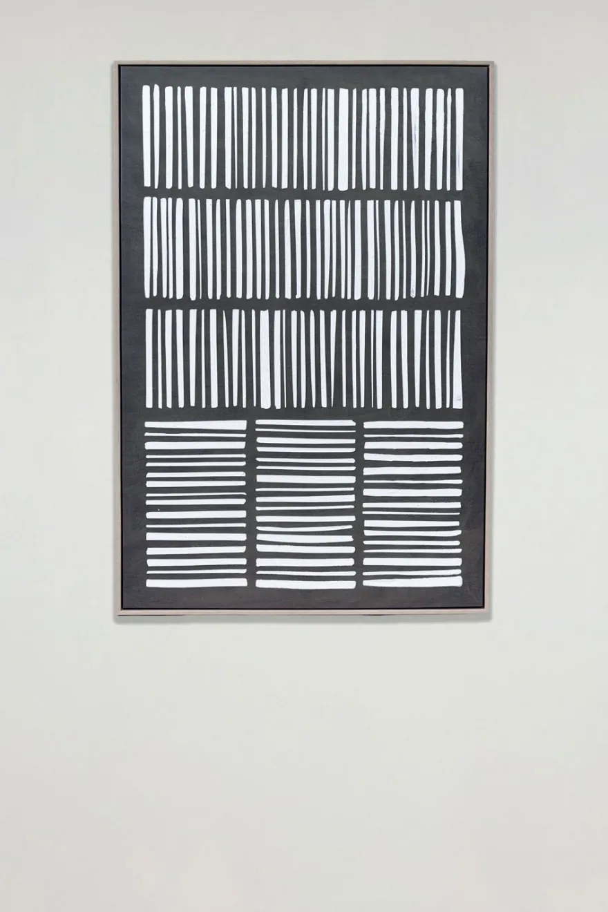 Lienzo decorativo de diseño minimalista compuesto por rayas verticales orgánicas, dispuestas en una composición equilibrada y serena.