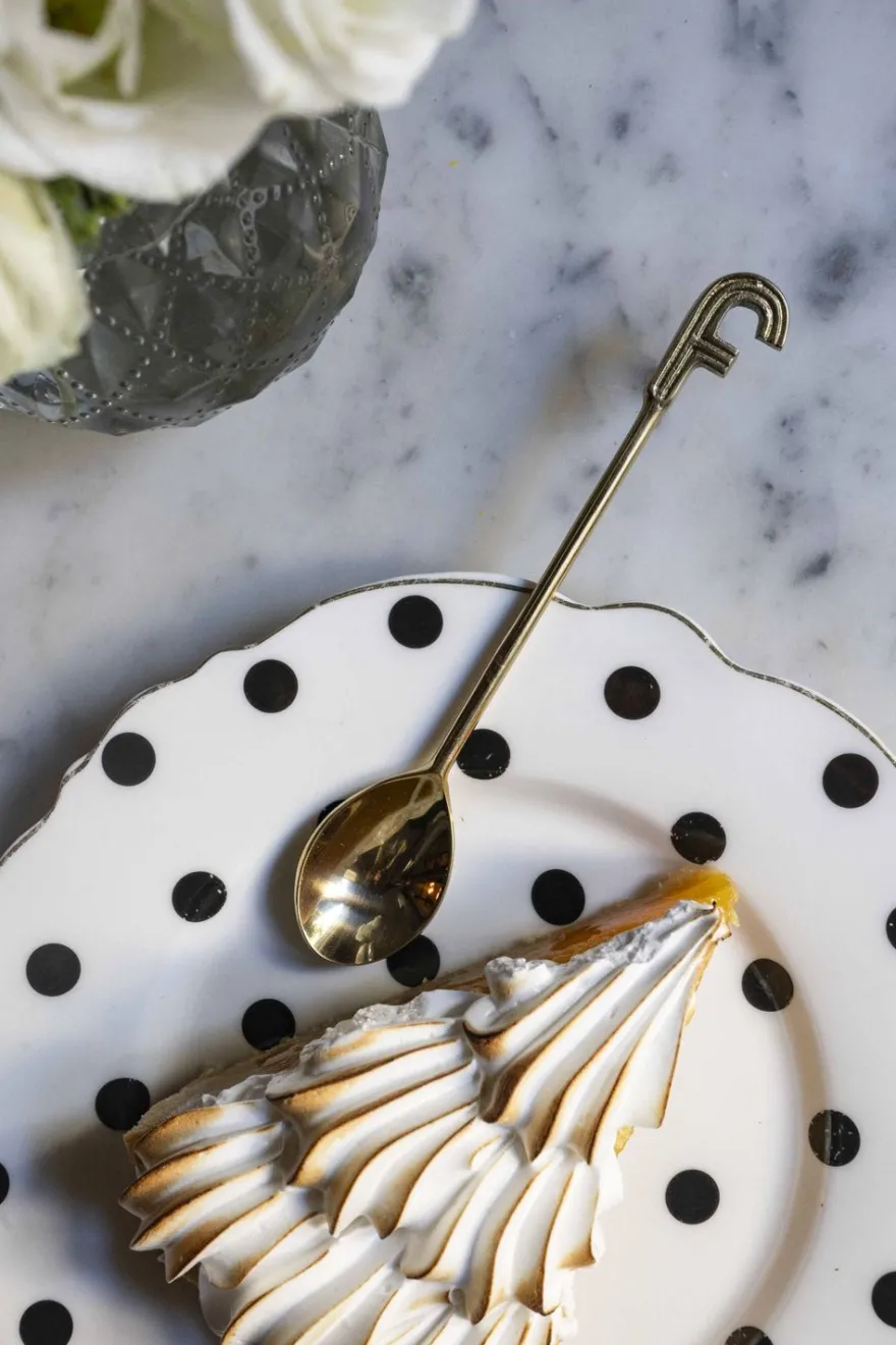 Esta elegante cucharita de bronce es el complemento perfecto para cualquier mesa. Cuenta con la inicial F grabada en su extremo, lo que la convierte en un regalo personalizado y exclusivo.