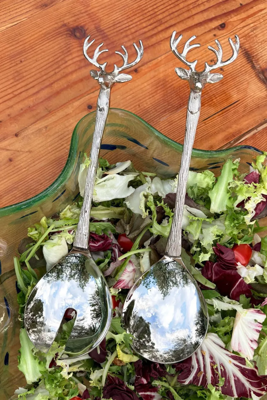 Este elegante set de cubiertos de servir es el complemento perfecto para cualquier mesa. Cuentan con la figura de un ciervo en su extremo, lo que los convierte en un regalo único.
