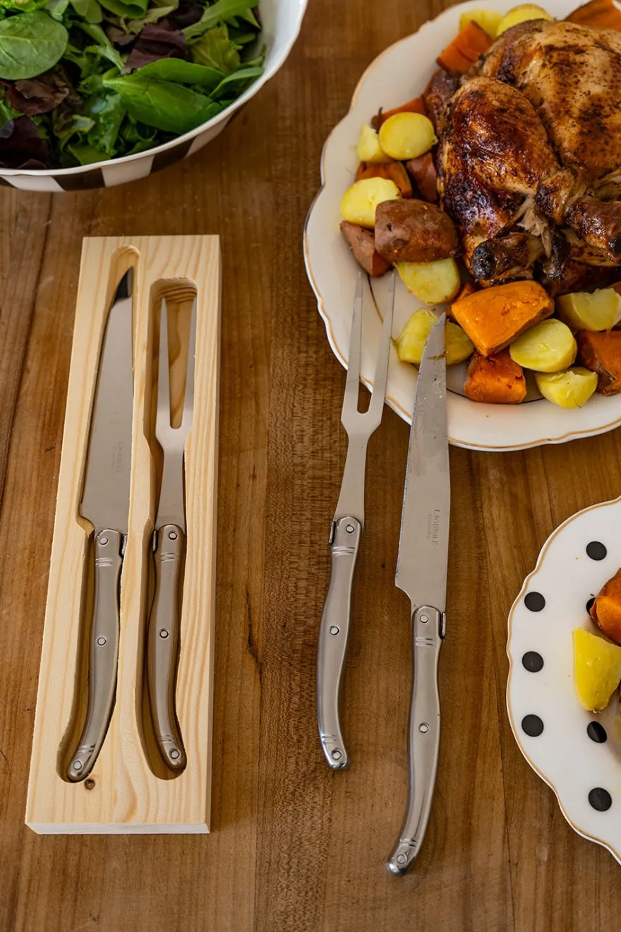 Cubiertos especiales para trinchar en color plateado de acero inoxidable con diseño Cristina Oria.