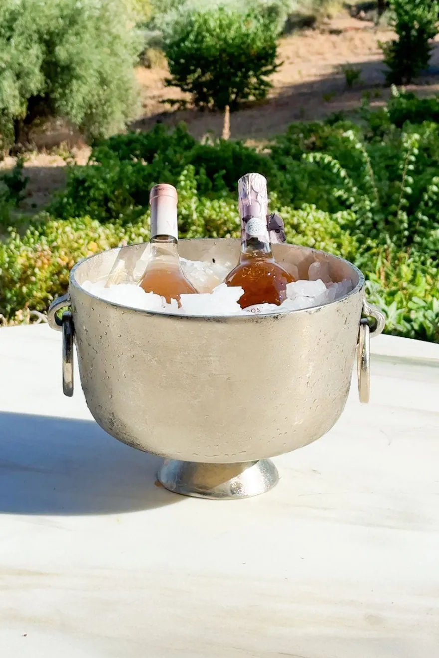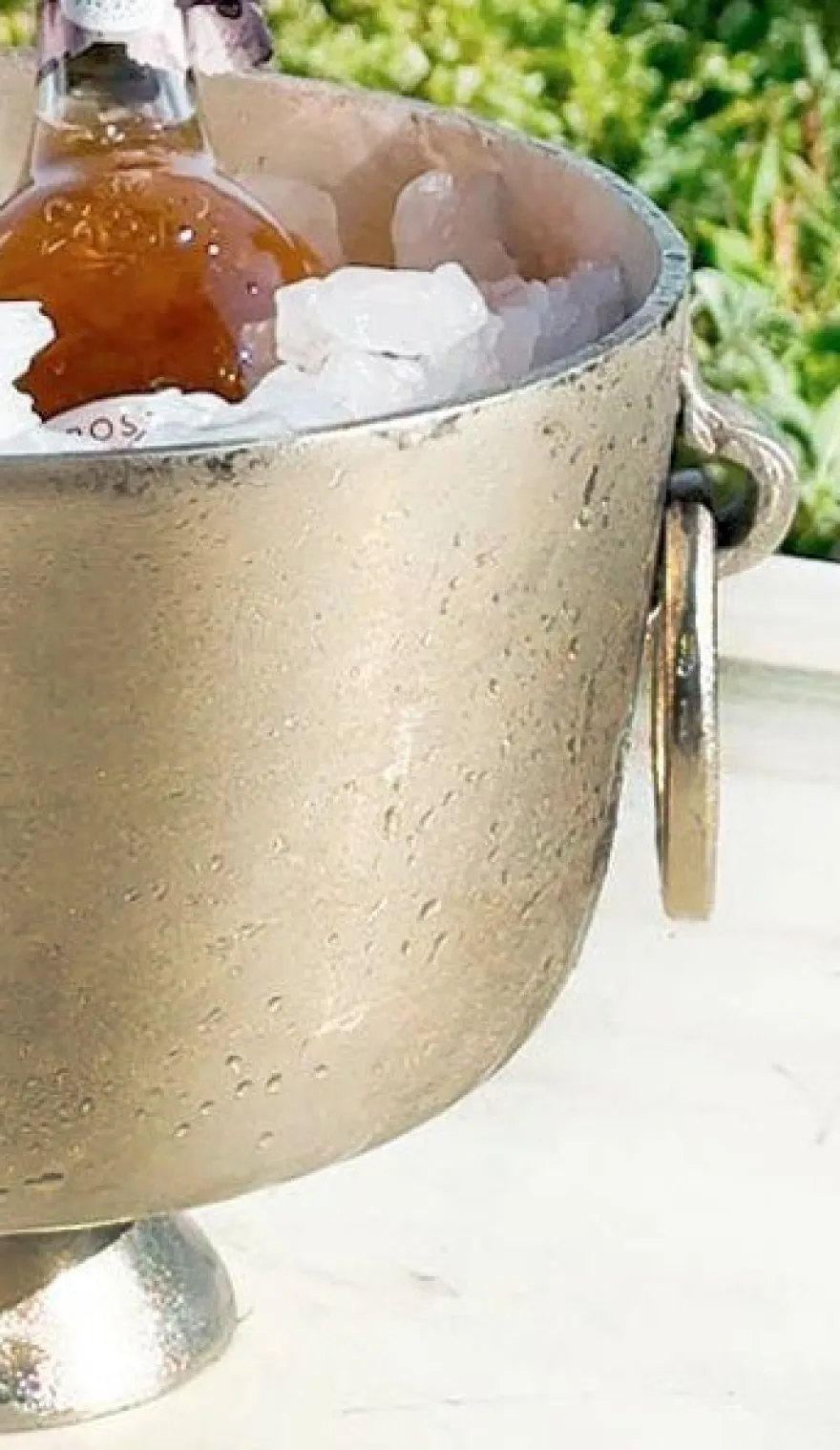 Cubitera o champanera de níquel con arandelas, ideal tanto para interiores como exteriores.