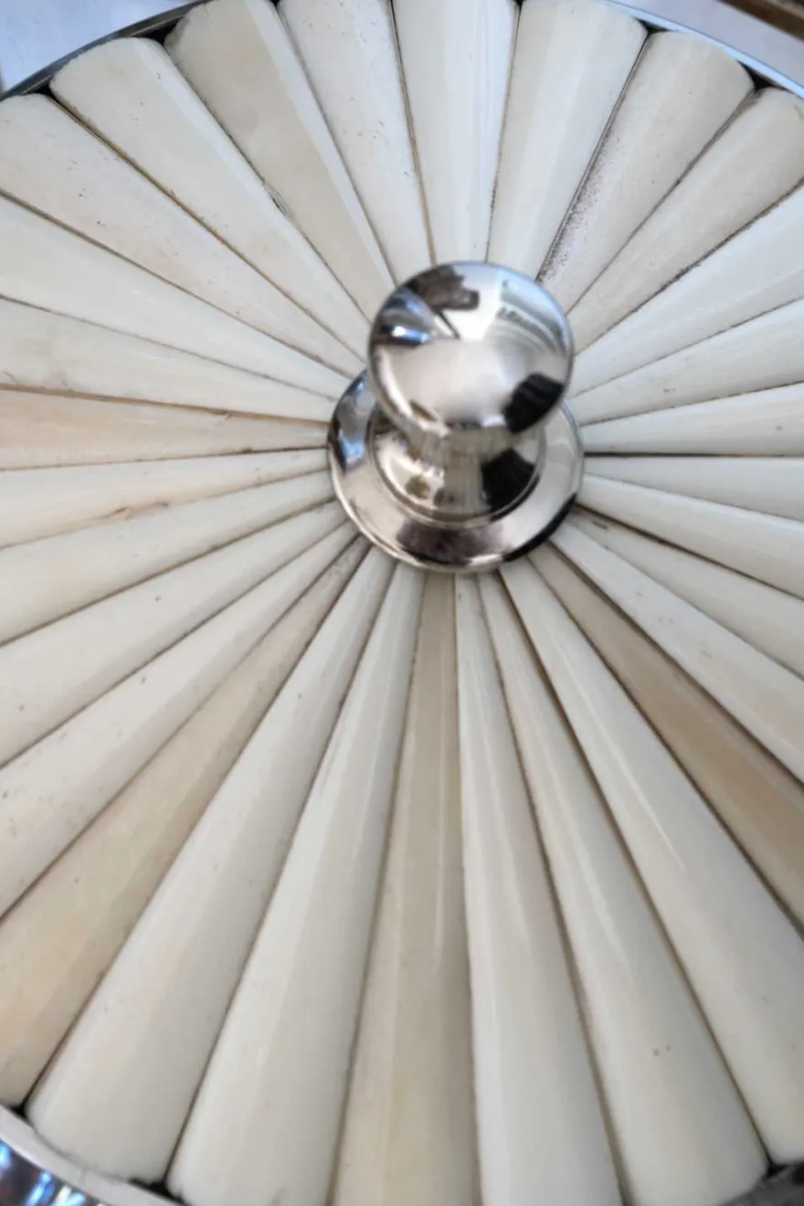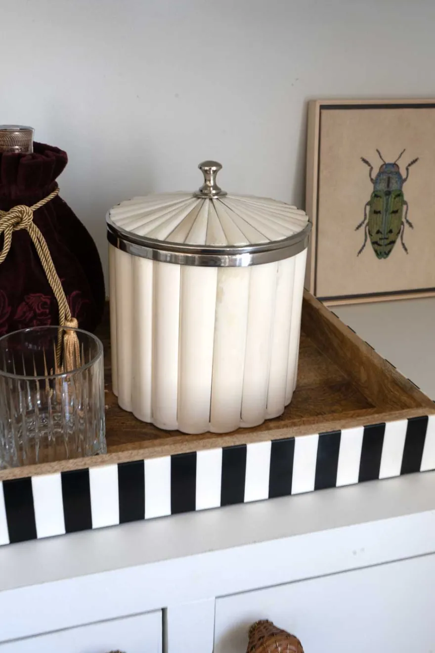 Cubitera de asta con diseño blanca. Todas nuestras cubiteras están elaboradas con patrones únicos, completamente fabricadas de manera artesanal. Son diseñadas y pulidas de tal forma que su acabado permanece como el primer día durante mucho tiempo.