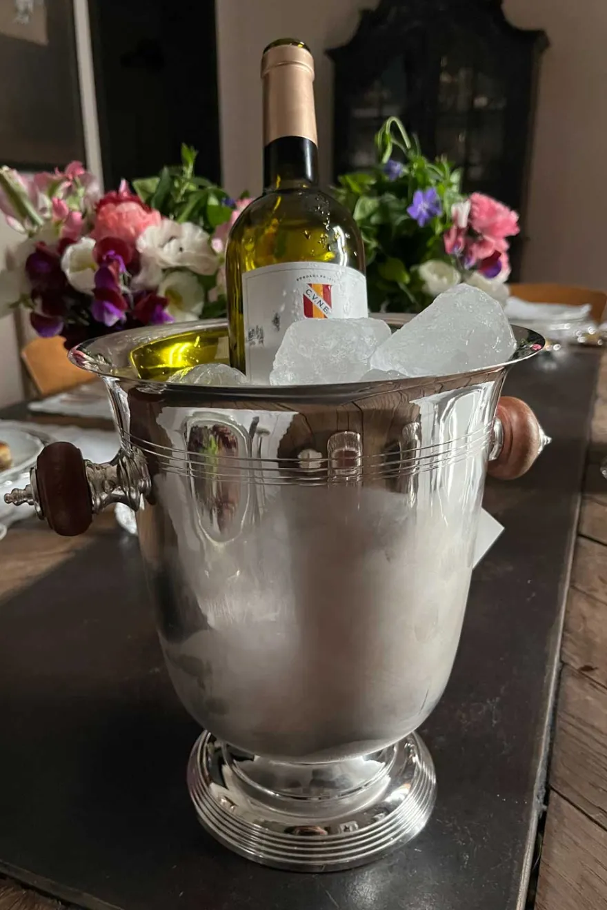 Esta cubitera o champanera bañada en plata de ley con agarradores de madera, es una pieza que combina elegancia y sofisticación en su diseño, ideal para añadir un toque de lujo a tu mesa. Un accesorio elegante y atemporal para ocasiones especiales y un regalo para toda la vida.
