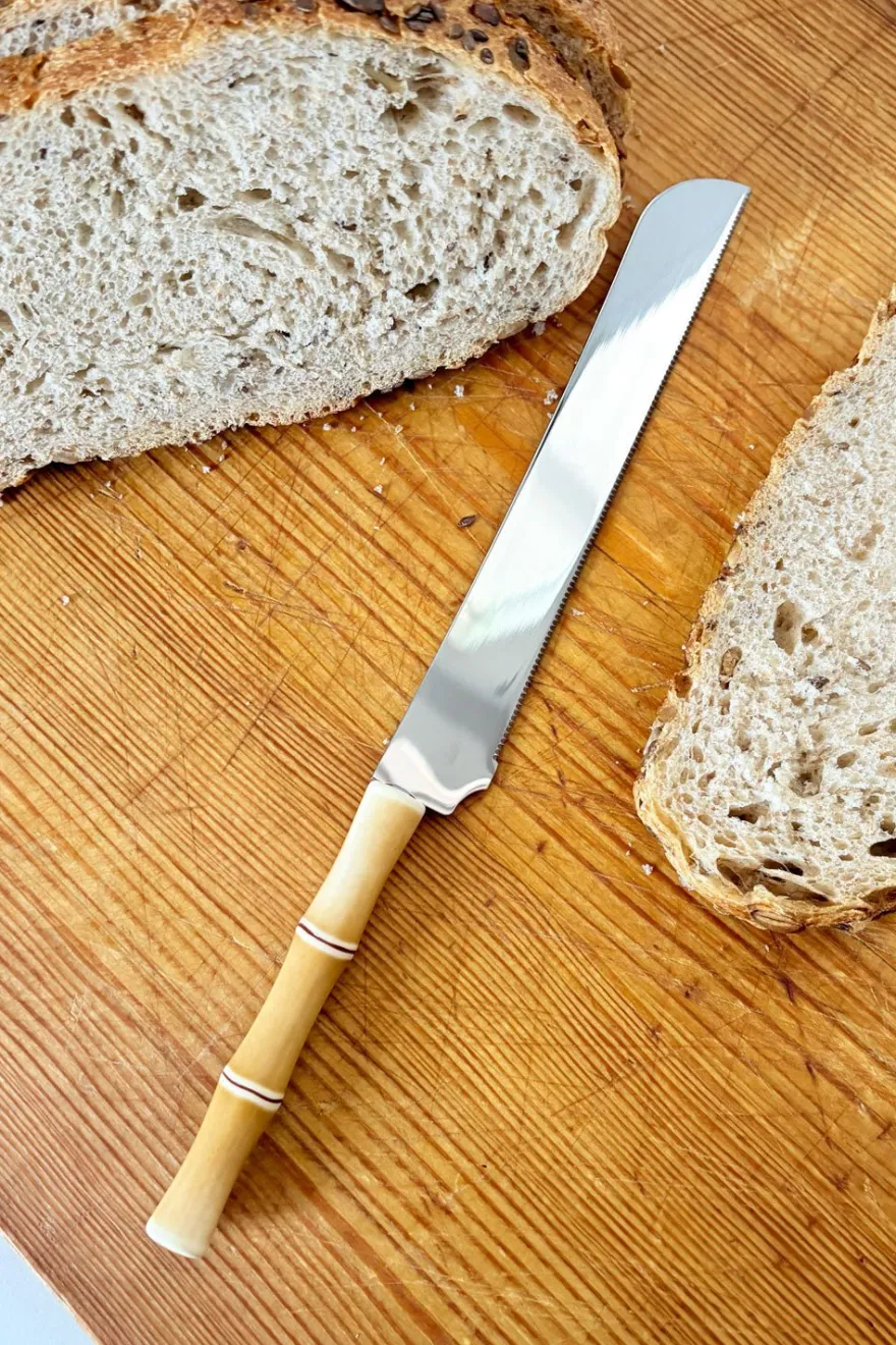Cuchillo de pan de nuestra cubertería con delicado diseño inspirado en el bambú, que aporta frescura y carácter a la mesa. Su mango evoca la estética natural de este material, creando una pieza elegante y atemporal que combina fácilmente con diferentes estilos de vajilla y decoración.