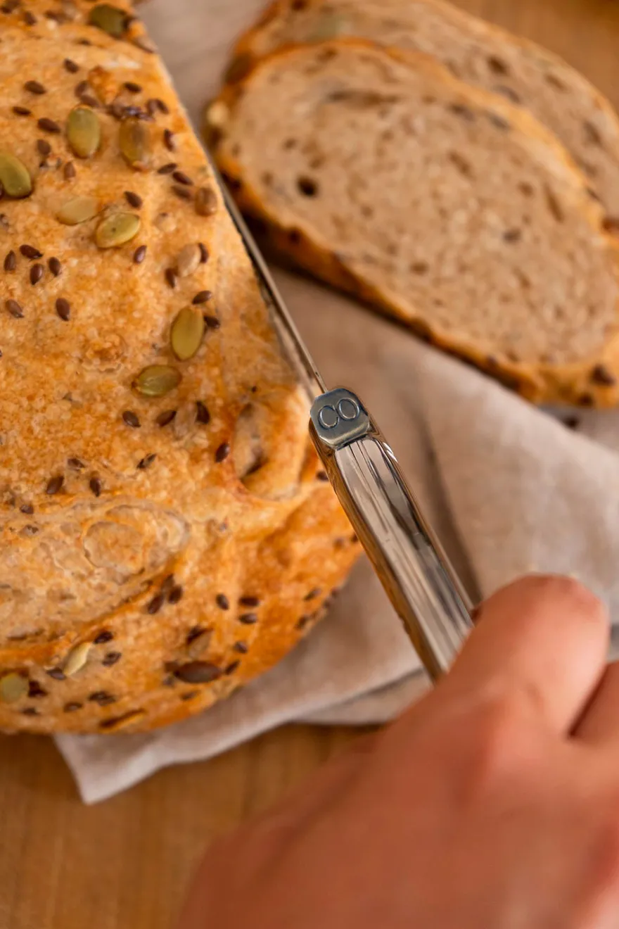 Cuchillo especial para cortar pan con hoja de sierra, en color plateado de acero inoxidable, con diseño Cristina Oria.