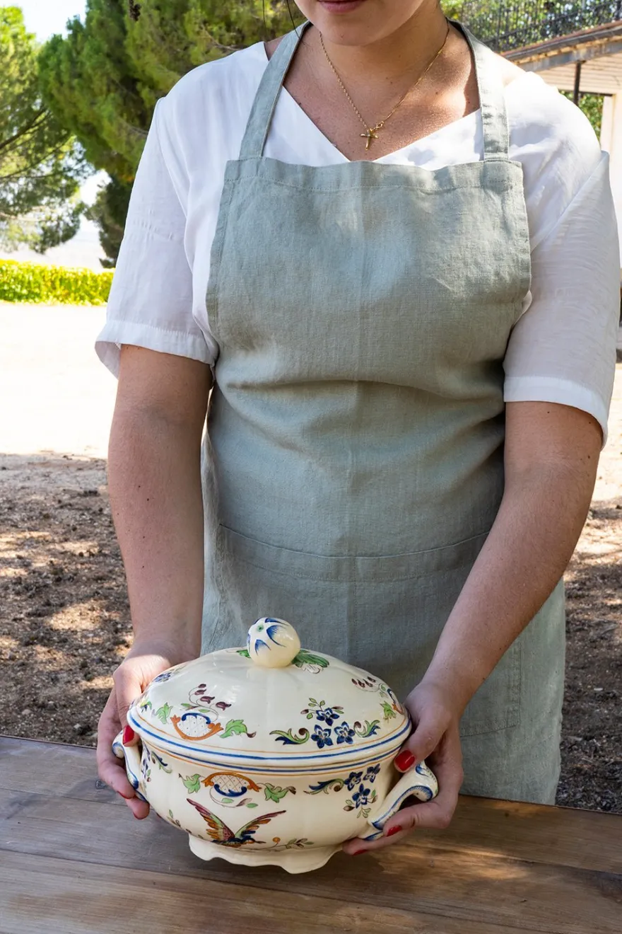 Delantal de lino para los amantes de la cocina, disponible en una amplia gama de colores, perfecto para su uso diario. Es fácil de ajustar con su cierre de corbata.
