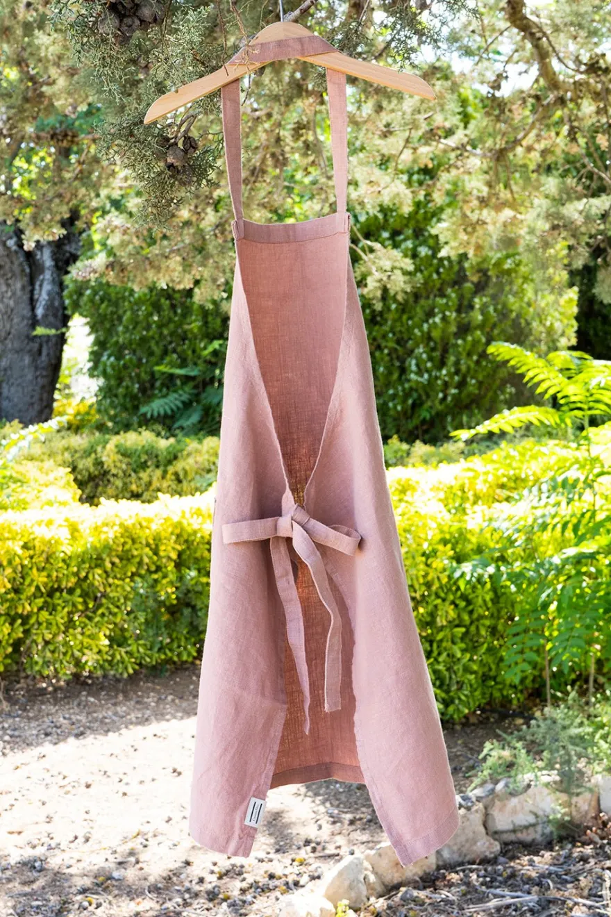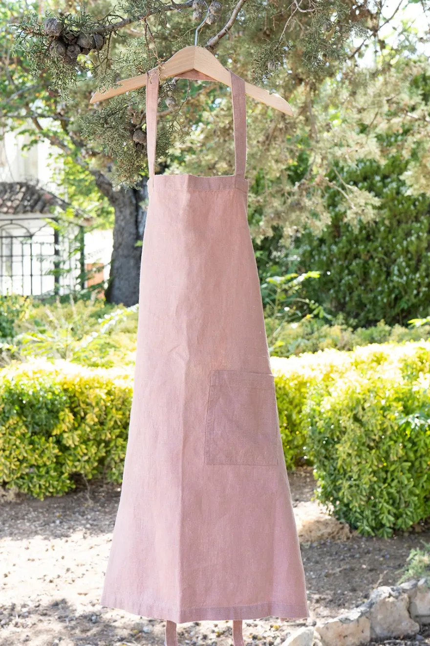Delantal de lino hecho a mano en color rosa para que los mini chefs no se ensucien en la cocina, disponible en dos tallas diferentes; de cuatro a seis años y de siete a nueve.