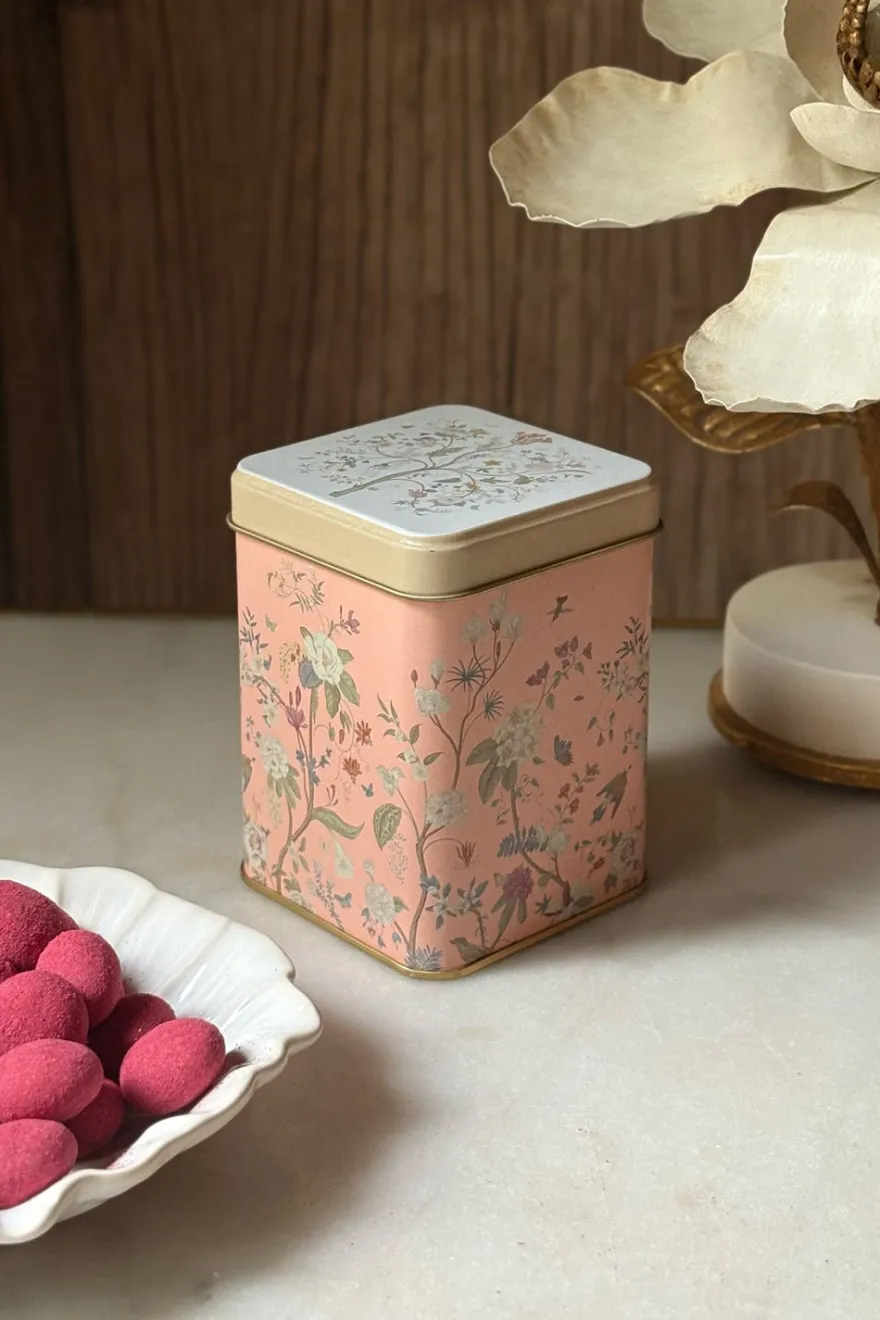 Esta cajita metálica con un detallado diseño de flores rellena de nuestras deliciosas almendras con chocolate y frambuesa, es el detalle perfecto para regalar en cualquier ocasión.