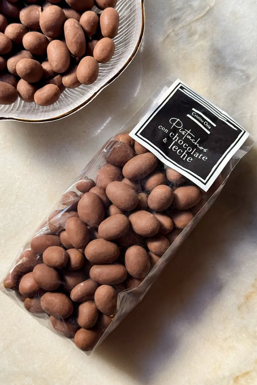 Pistachos recubiertos con una fina capa de delicioso chocolate con leche que permite preservar el aroma del fruto seco consiguiendo así un perfecto equilibrio de sabores.