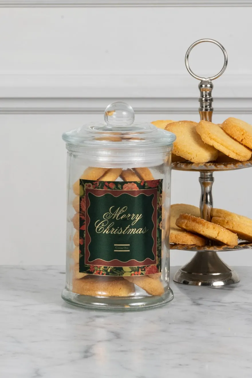 Nuestras deliciosas bretonas presentadas en un tarro de cristal con dedicatoria «Merry Christmas».