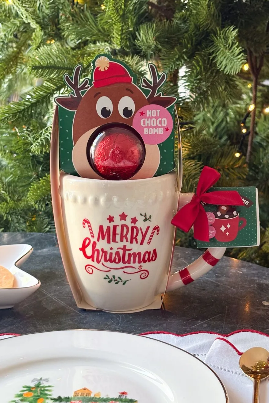 Originales tazas de diseños navideños, que incluyen un delicioso bombón de chocolate. Al colocarlo en tu bebida caliente, el bombón se derrite suavemente, transformándose en un irresistible chocolate caliente lleno de sabor y dulzura.