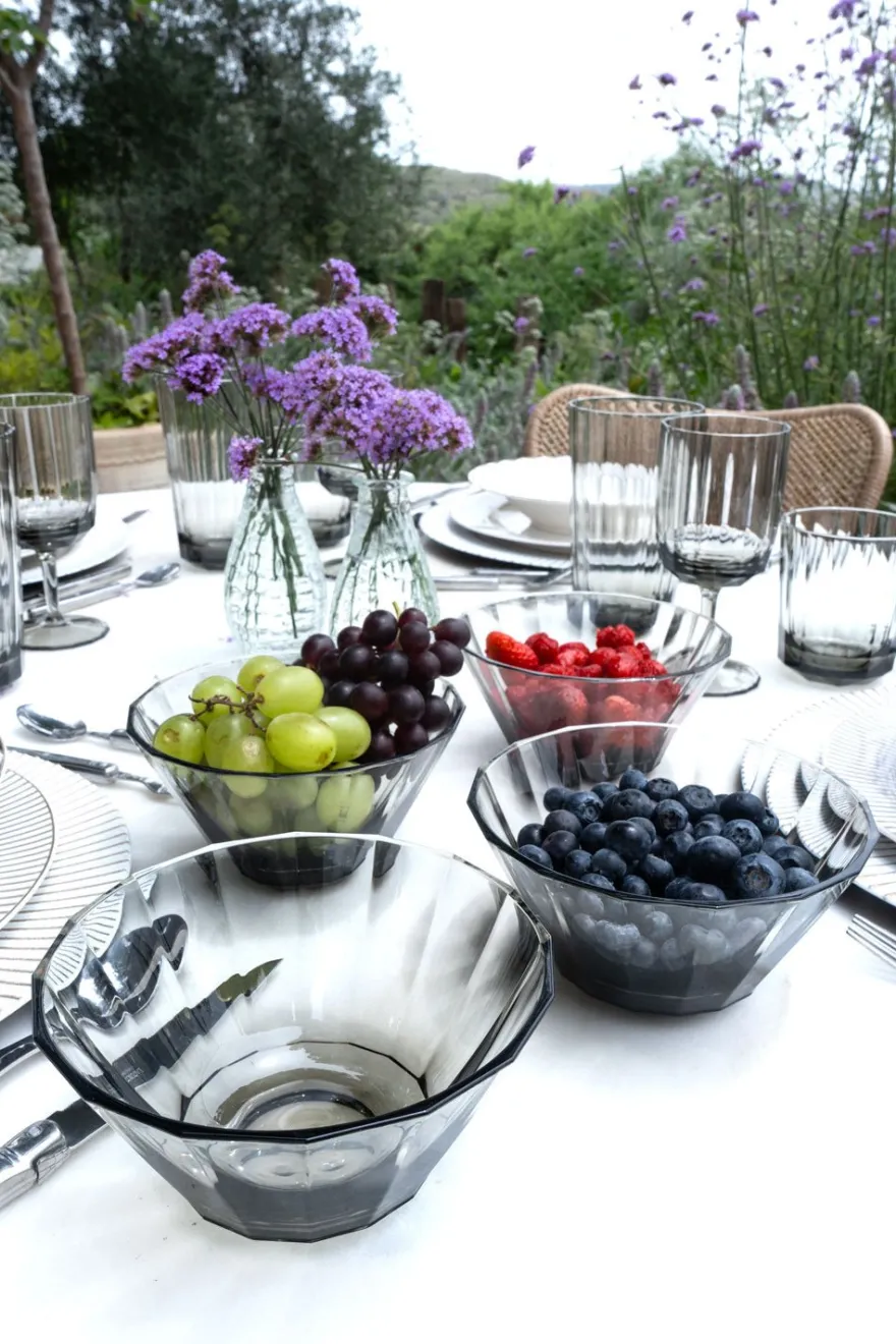 Cuenco de nuestra cristalería acrílica en tono gris que combina el aspecto del vidrio con la durabilidad del acrílico.