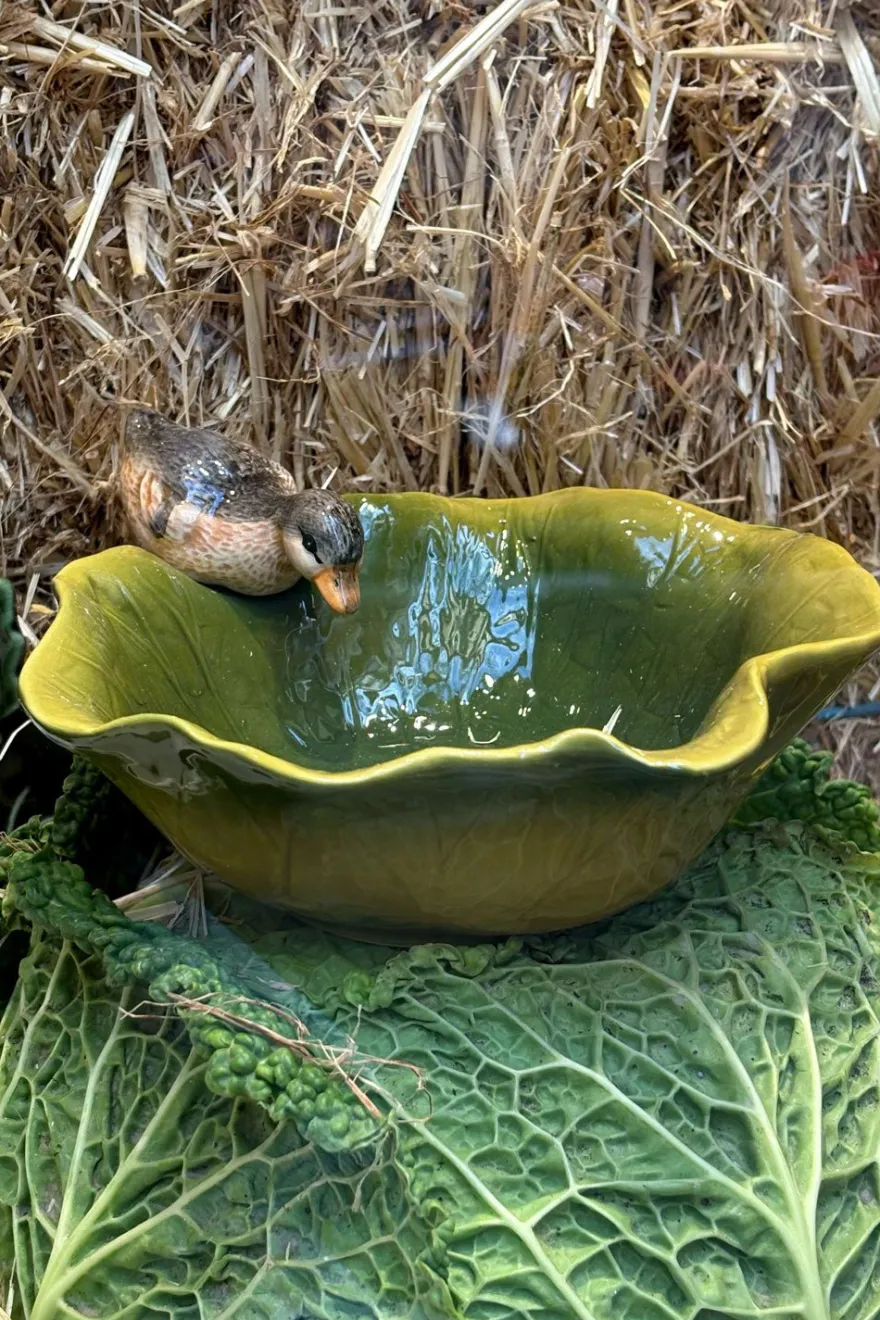 Este cuenco de porcelana, elaborado artesanalmente, presenta un delicado diseño de hoja verde y una figura de un pato que le da un toque especial y natural. Perfecto tanto para usar como vajilla en tus comidas o para decorar tu casa con un detalle único.