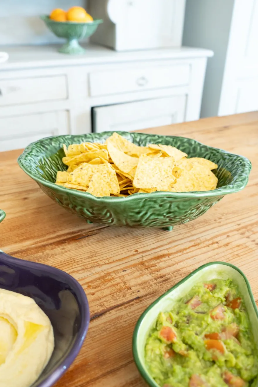 Ensaladera oval grande de cerámica con diseño de hoja de col, ideal para dar un toque fresco, original y diferente a tus mesas durante cualquier época del año.